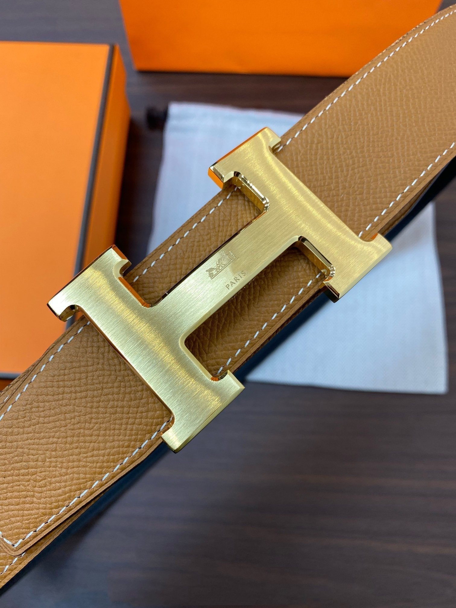 H Buckle in permabrass plated metal.