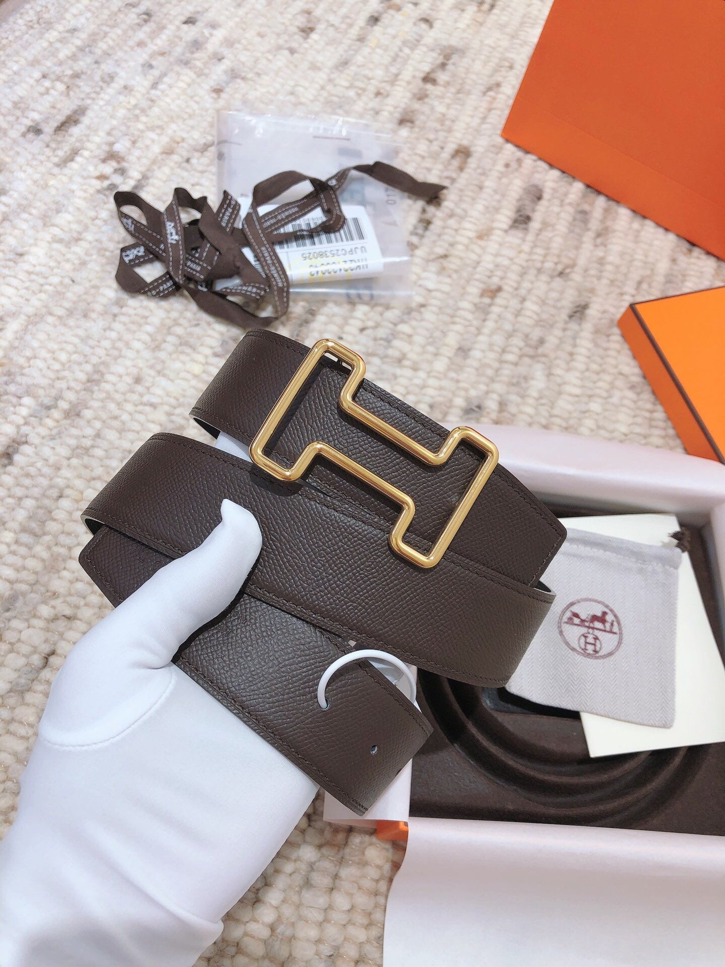 • H Buckle in permabrass plated metal.