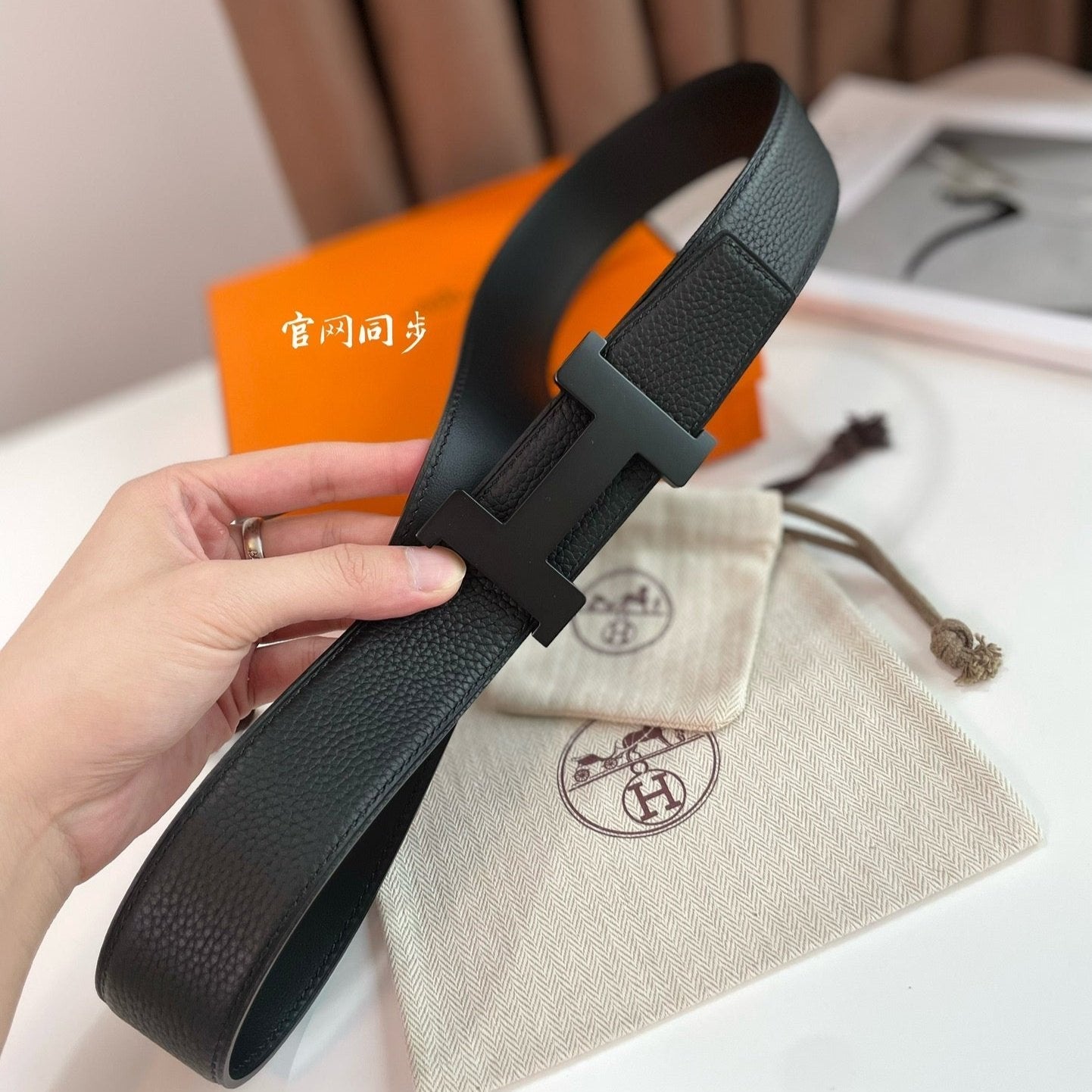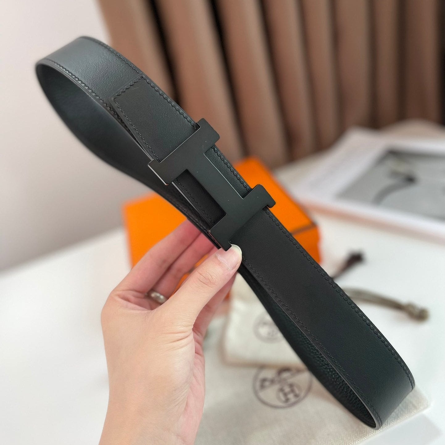 HM CONSTANCE BELT BUCKLE & REVERSIBLE BLACK LEATHER STRAP 38MM