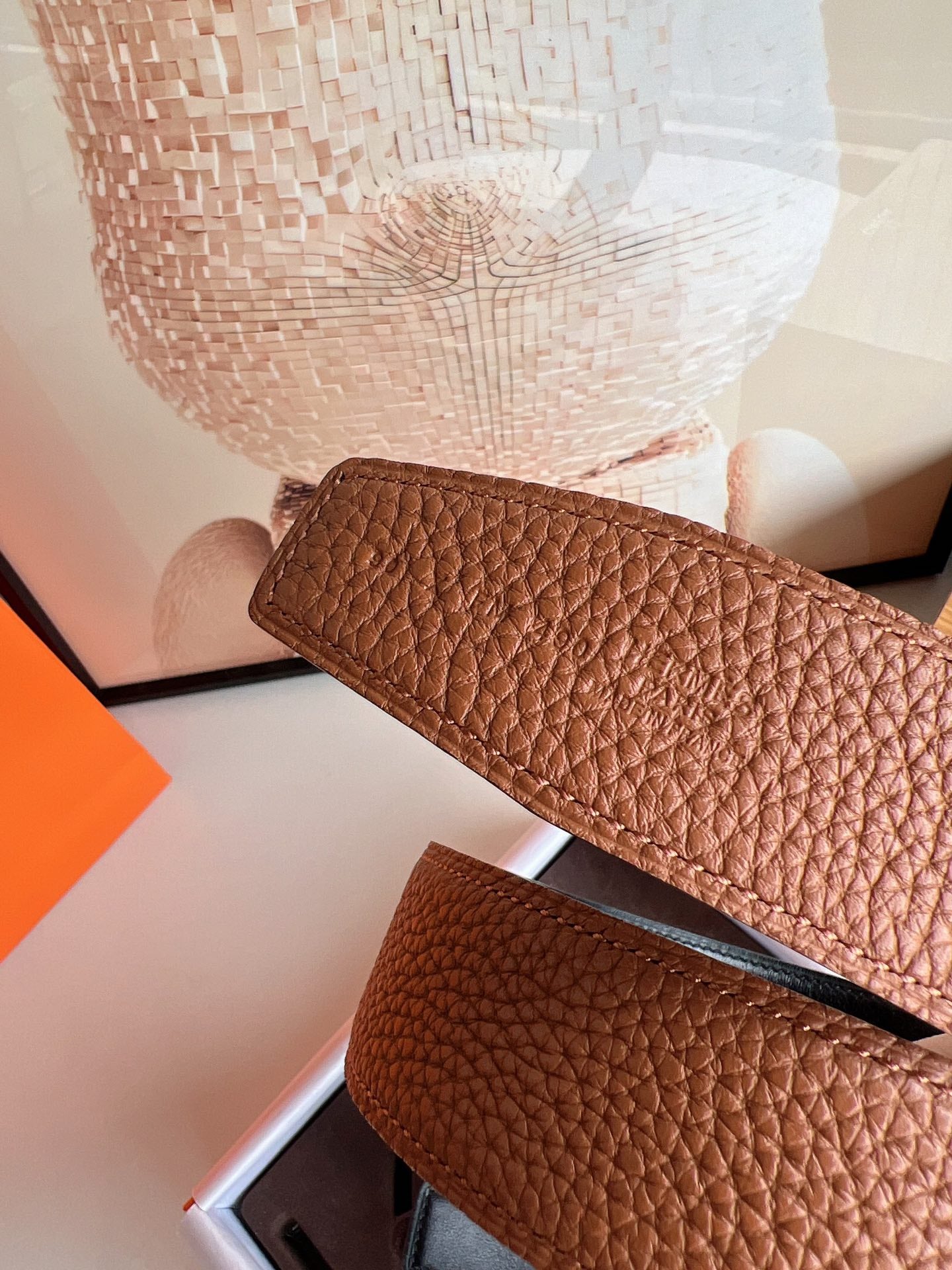 HM JUMBO BELT BUCKLE & REVERSIBLE CIDER ORANGE AND BLACK LEATHER STRAP 38 MM GOLD HARDWARE