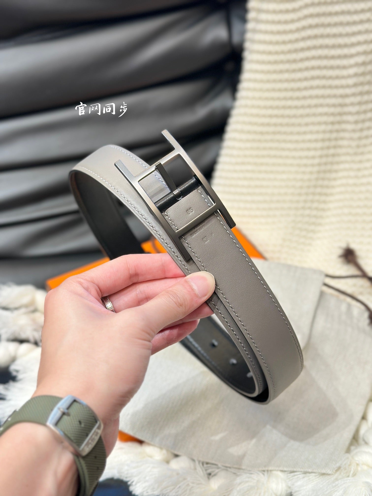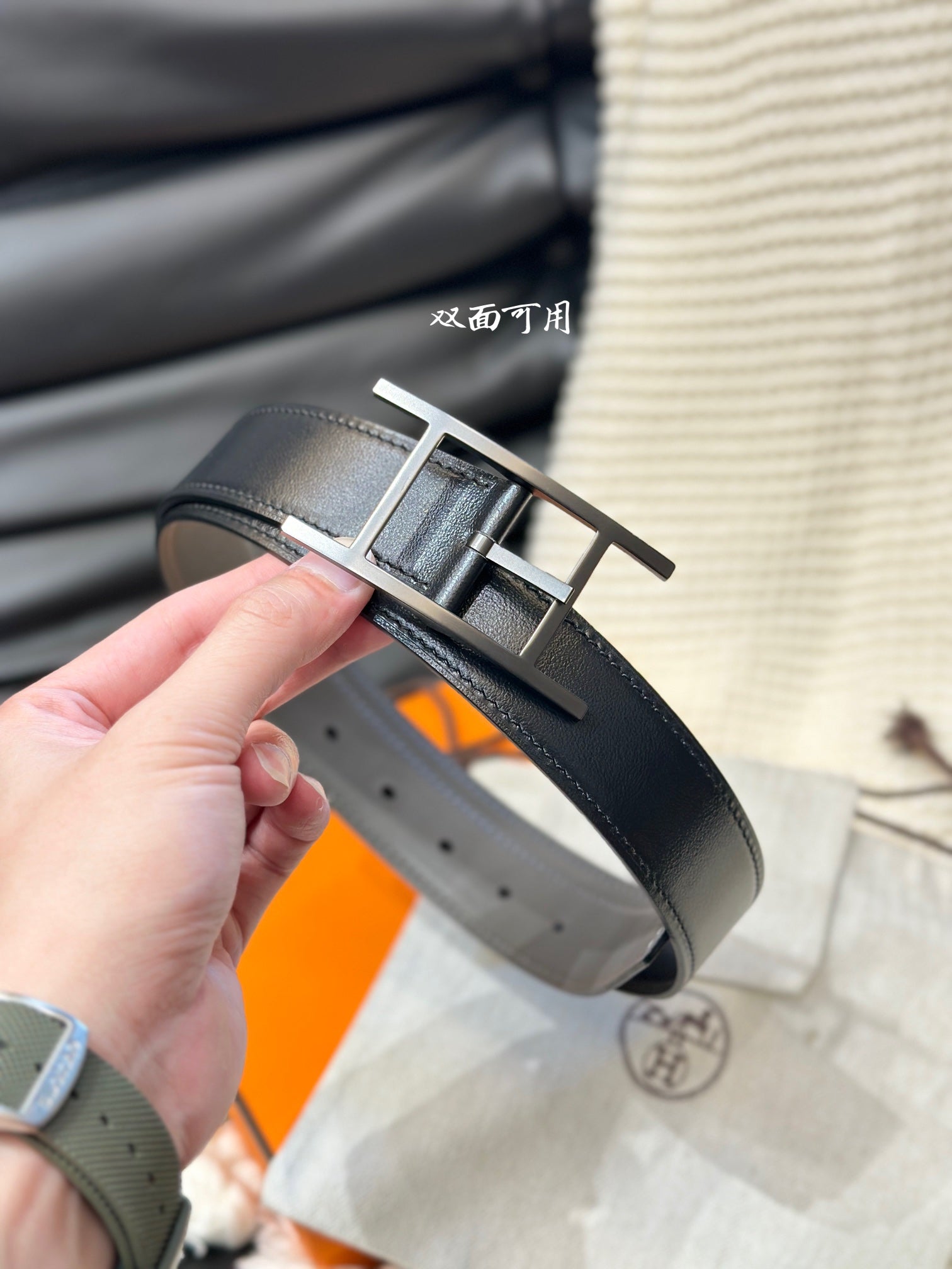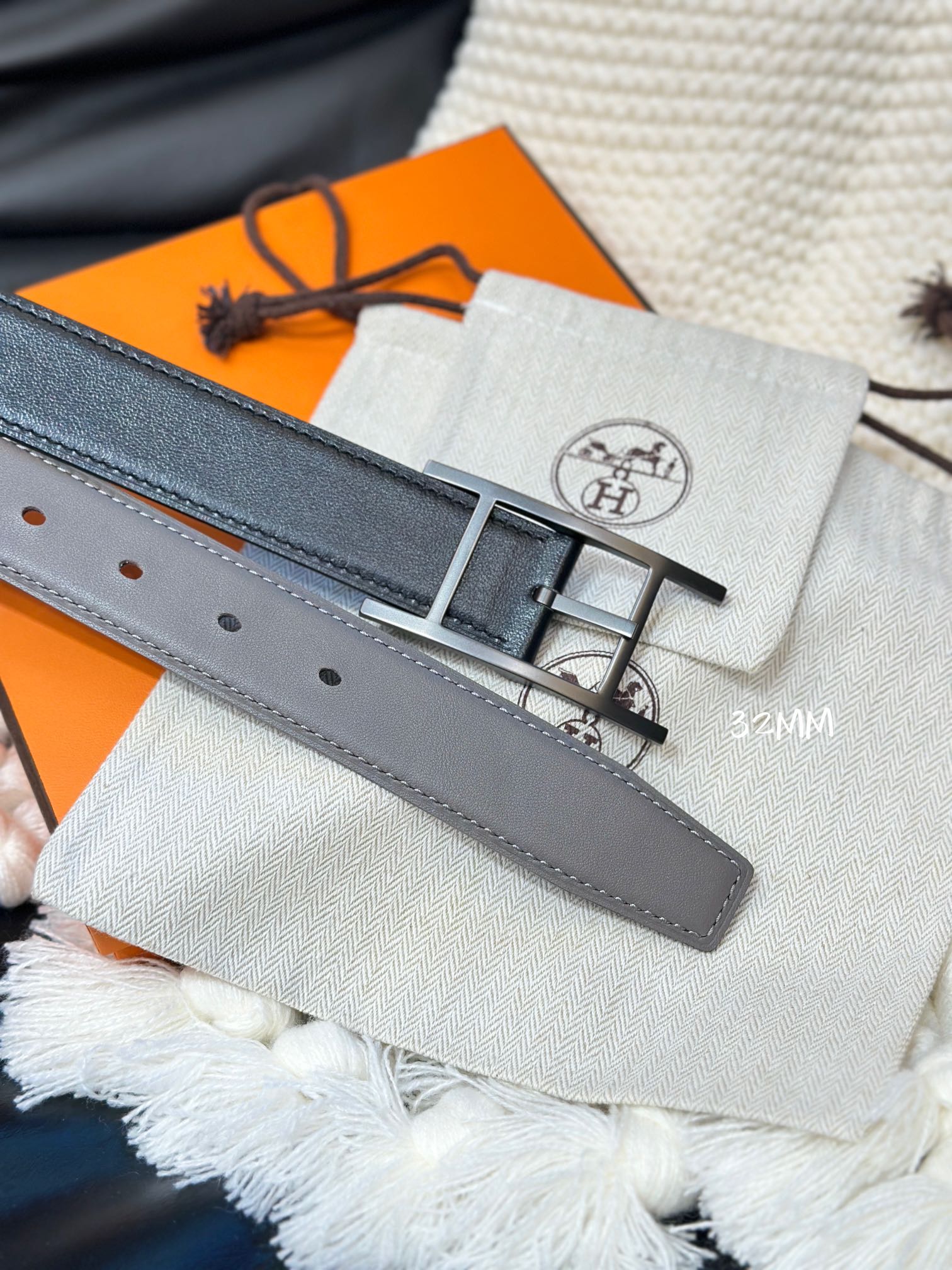 HM QUENTIN 32MM REVERSIBLE BELT BLACK AND KHAKI BROWN LEATHER BLACK HARDWARE