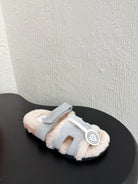 HM Chypre Sandal In Light Grey Blue Mix White Suede And Fleece Lining 961137