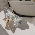 Jimmy 25 Platform Sandal Heels Silver Mirror TPU Material 240008