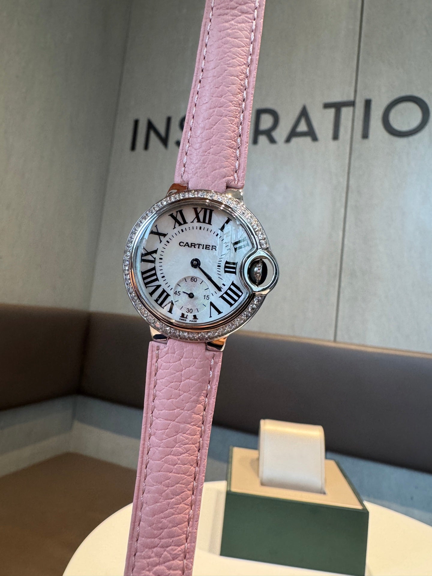 Cartier Bleu Balloon 33mm Silver Pink Diamond