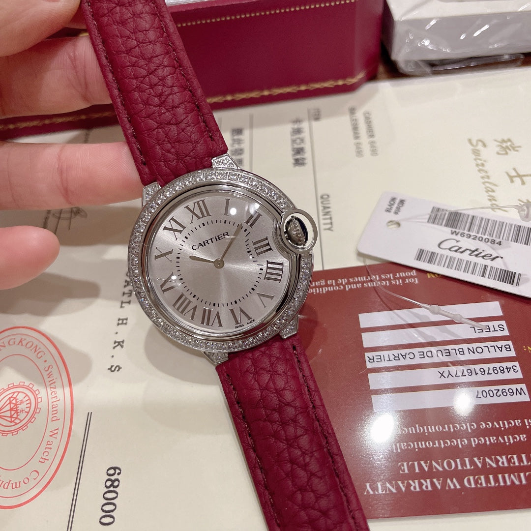 Cartier Ballon Bleu 36mm Diamond Leather