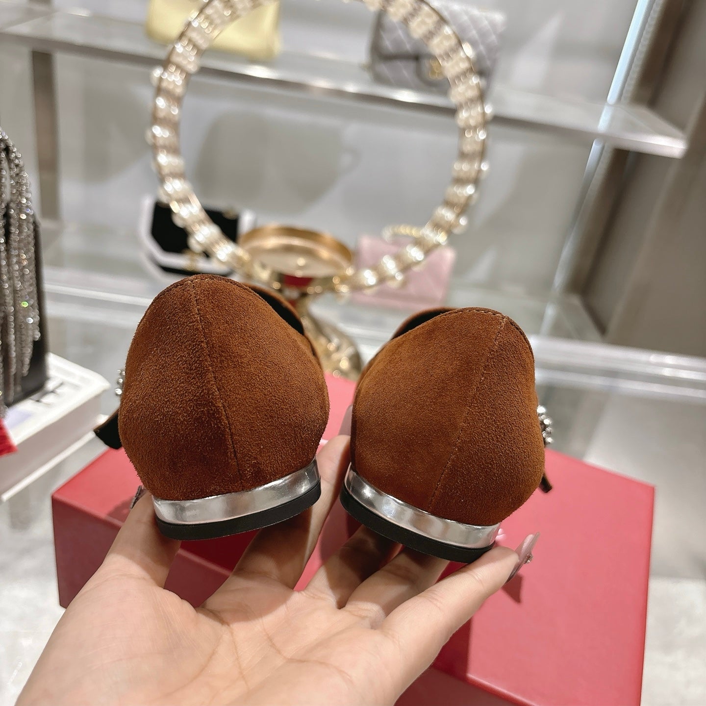 LP 25 Summer Charm Sandal 55 Beige Suede Dard Red Calfskin
