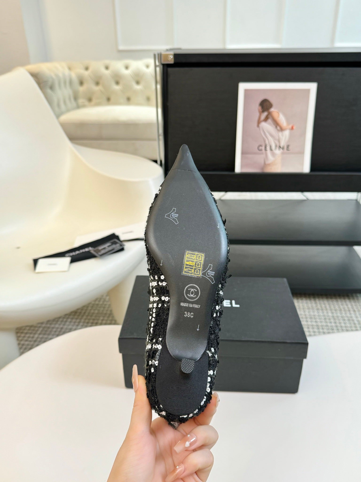 CC MARY JANE IN BLACK MIX WHITE WOOL TWEED