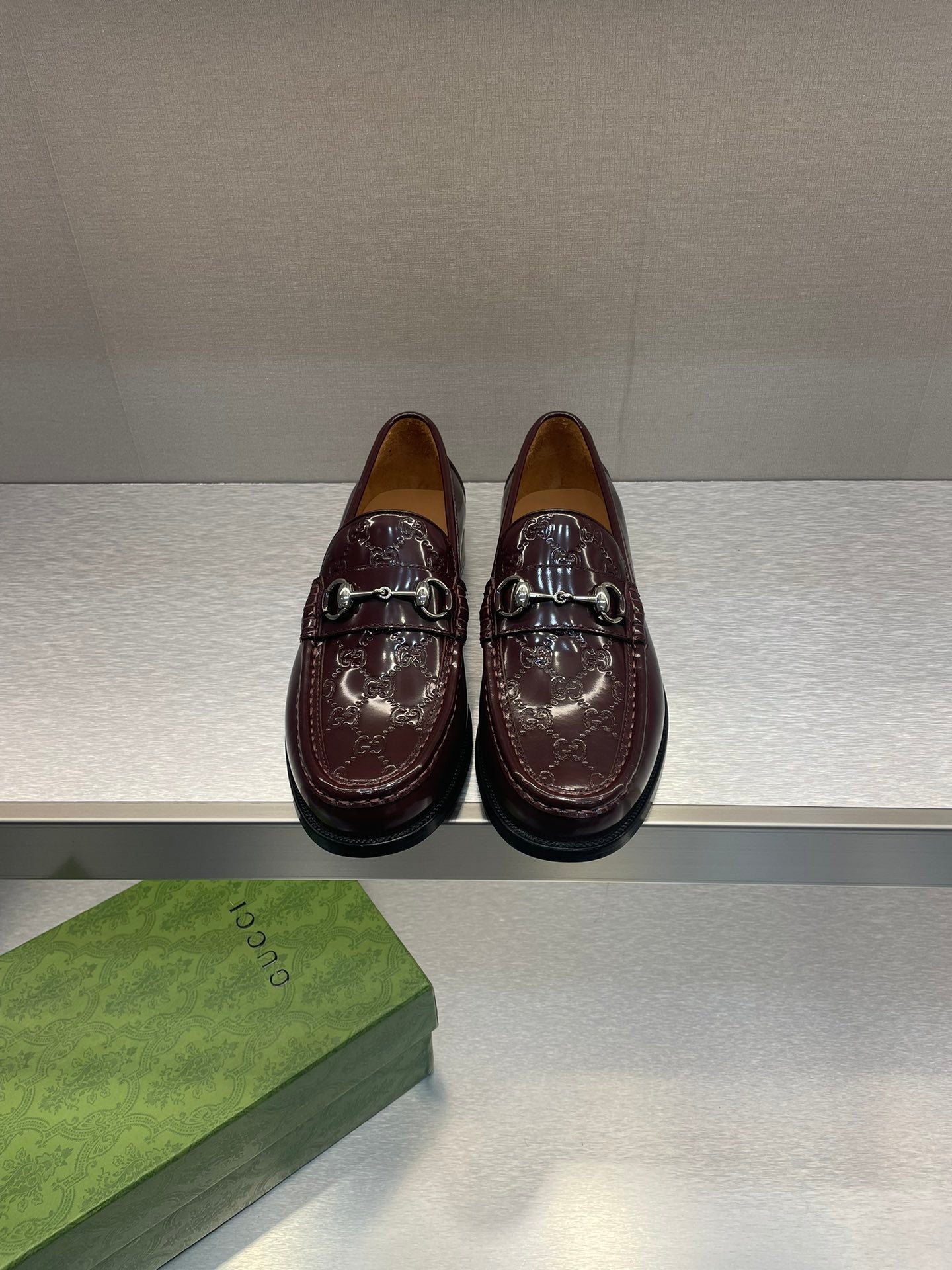 GG Men's Horsebit Loafer Brown Embossed Patent Leather 542448