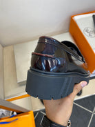 HM Men's Loafer Black Mix Brown Patent Leather 540806