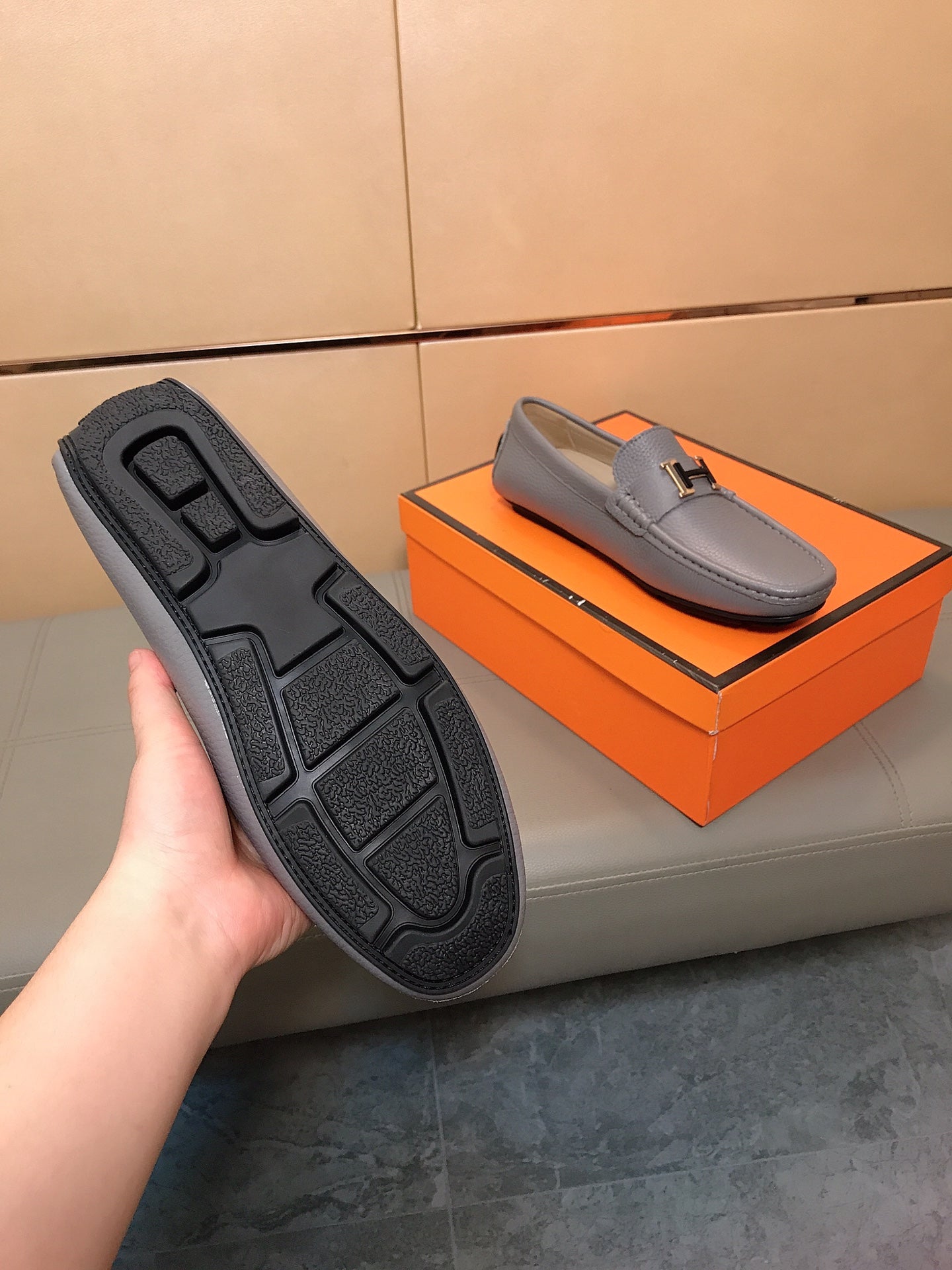 HM Men's Loafer Grey Cowhide 523199