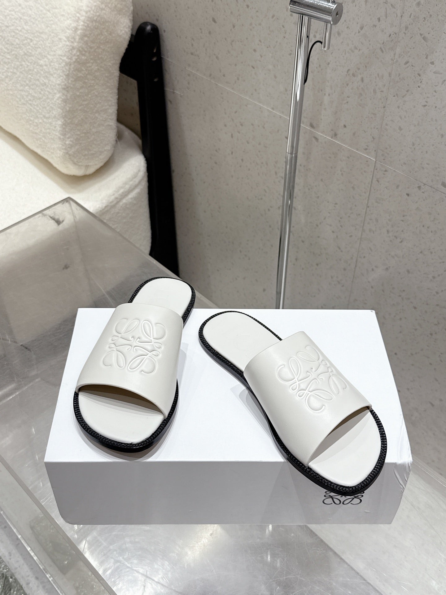 Loewe 25 flat slippers white calfskin