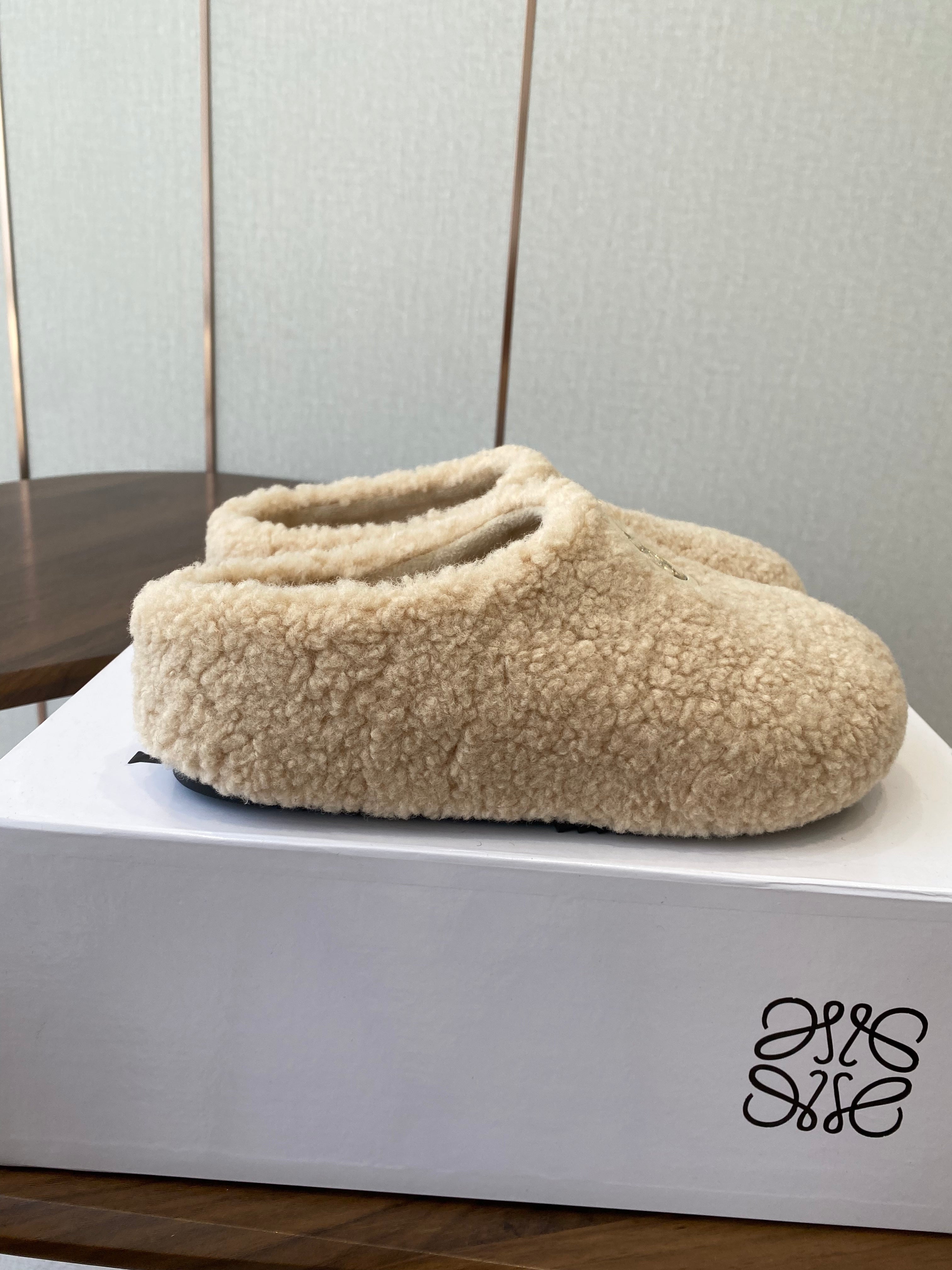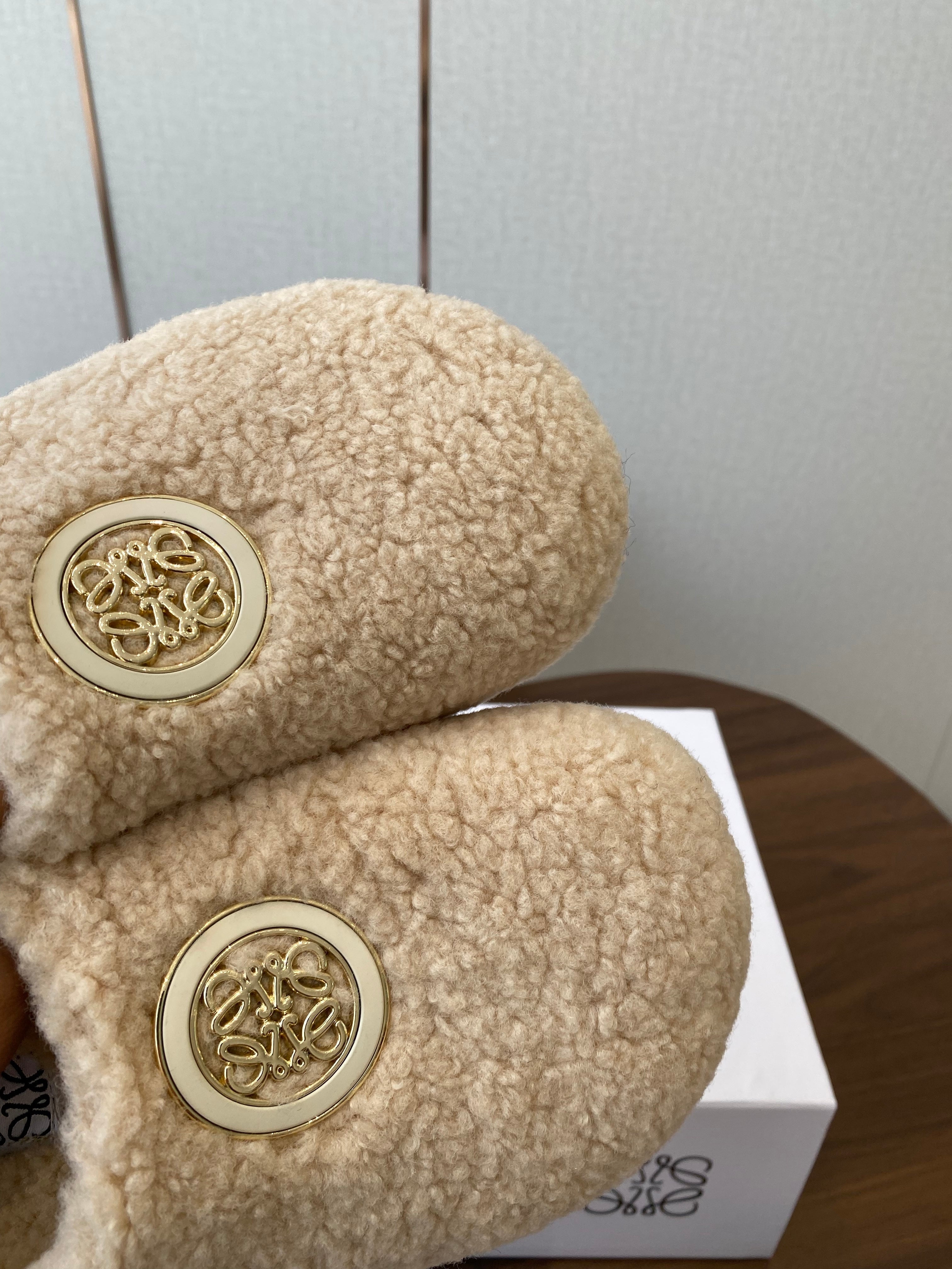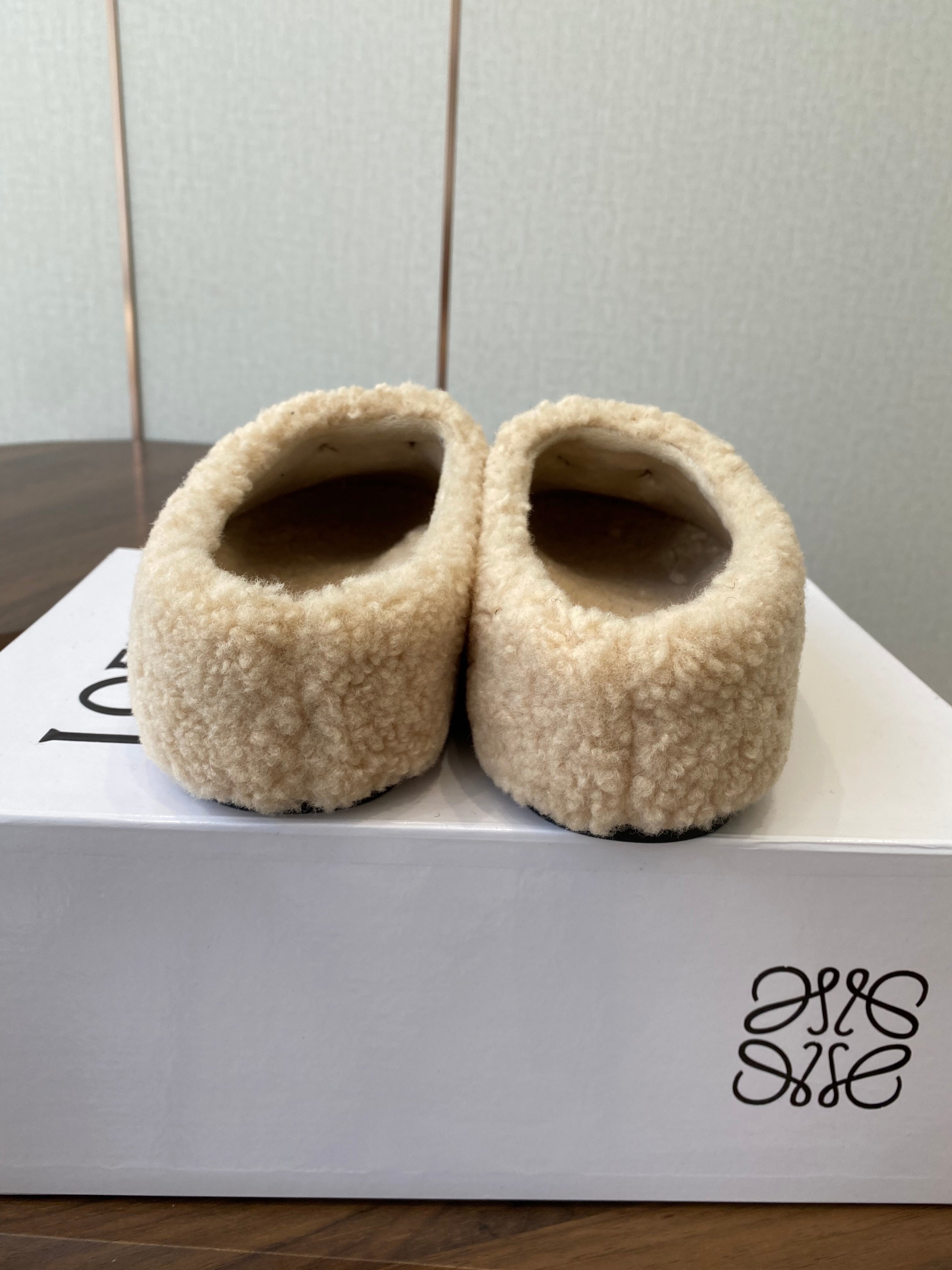Loewe Birkenstock slippers beige wool 477791