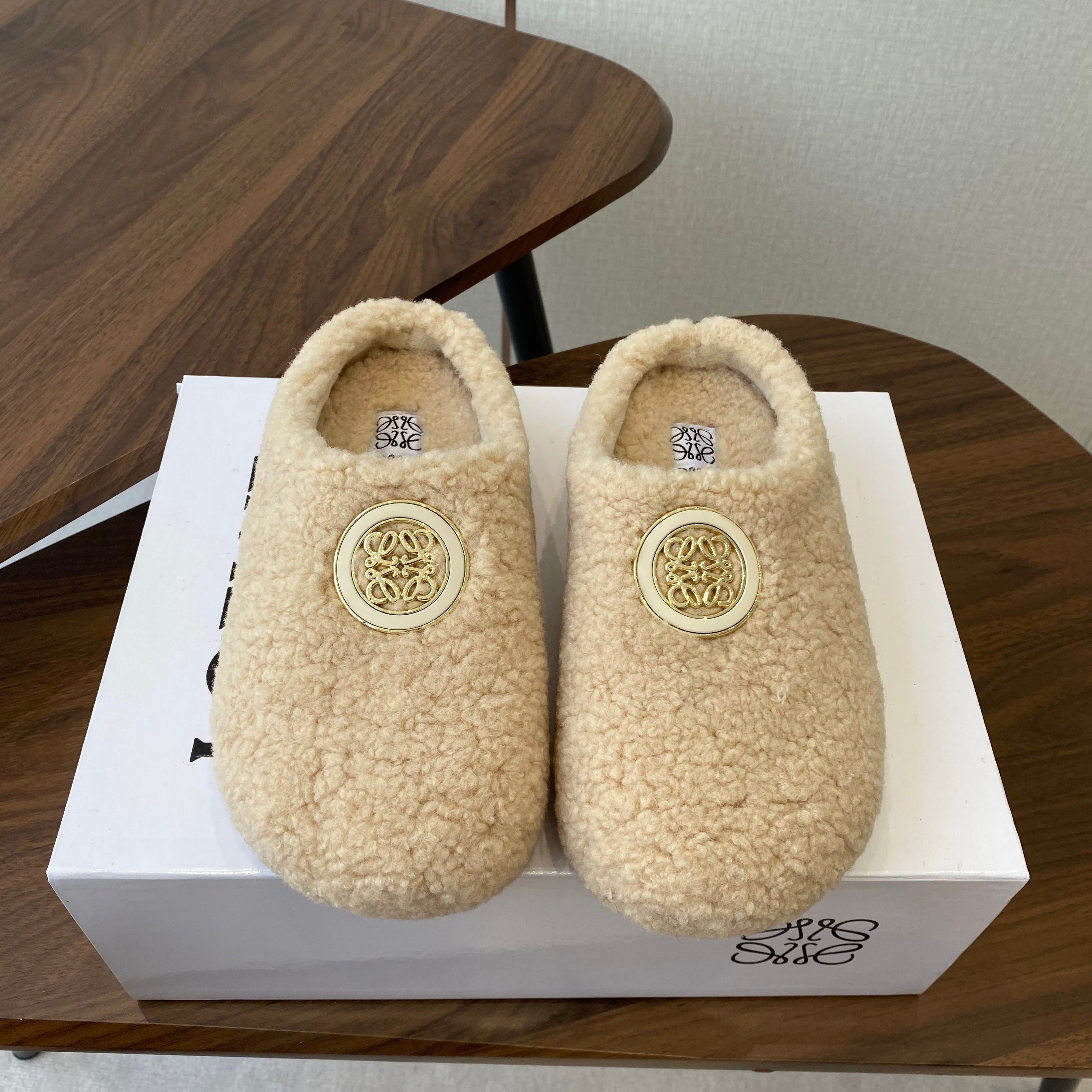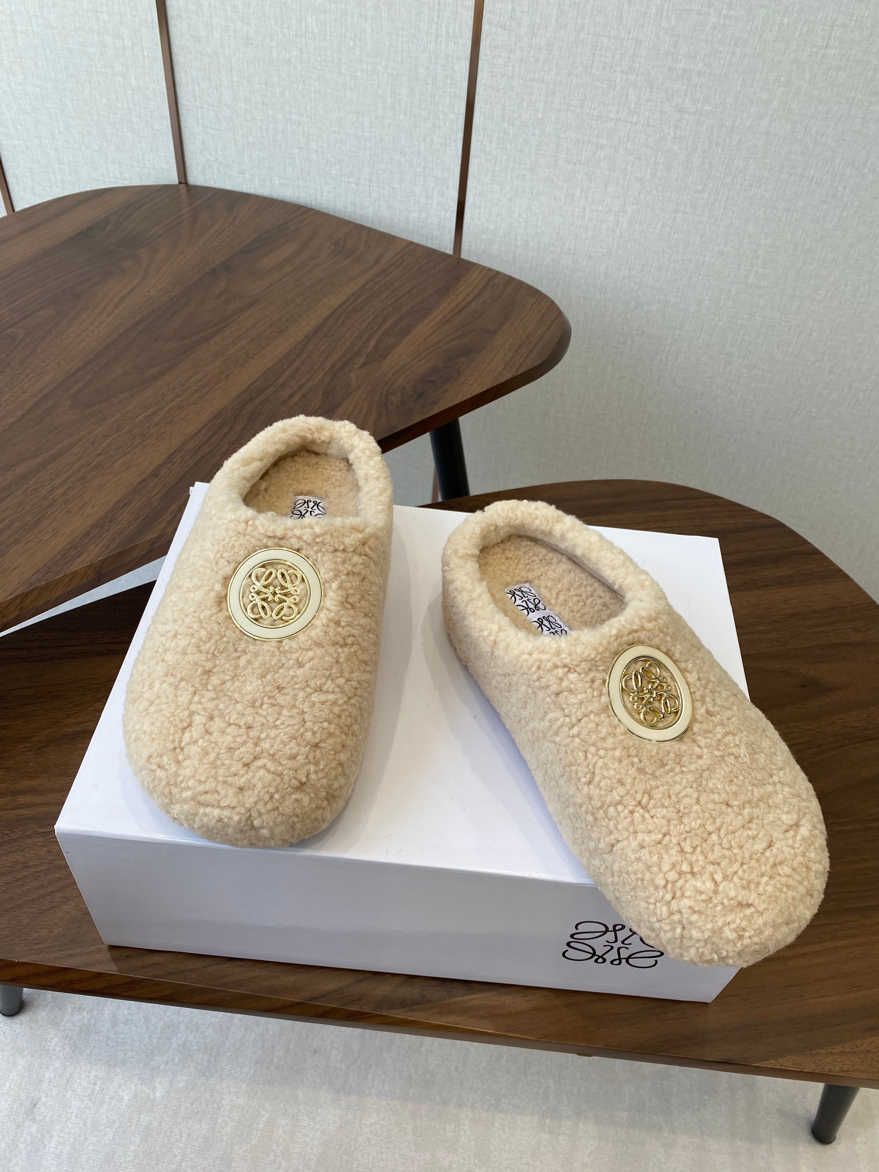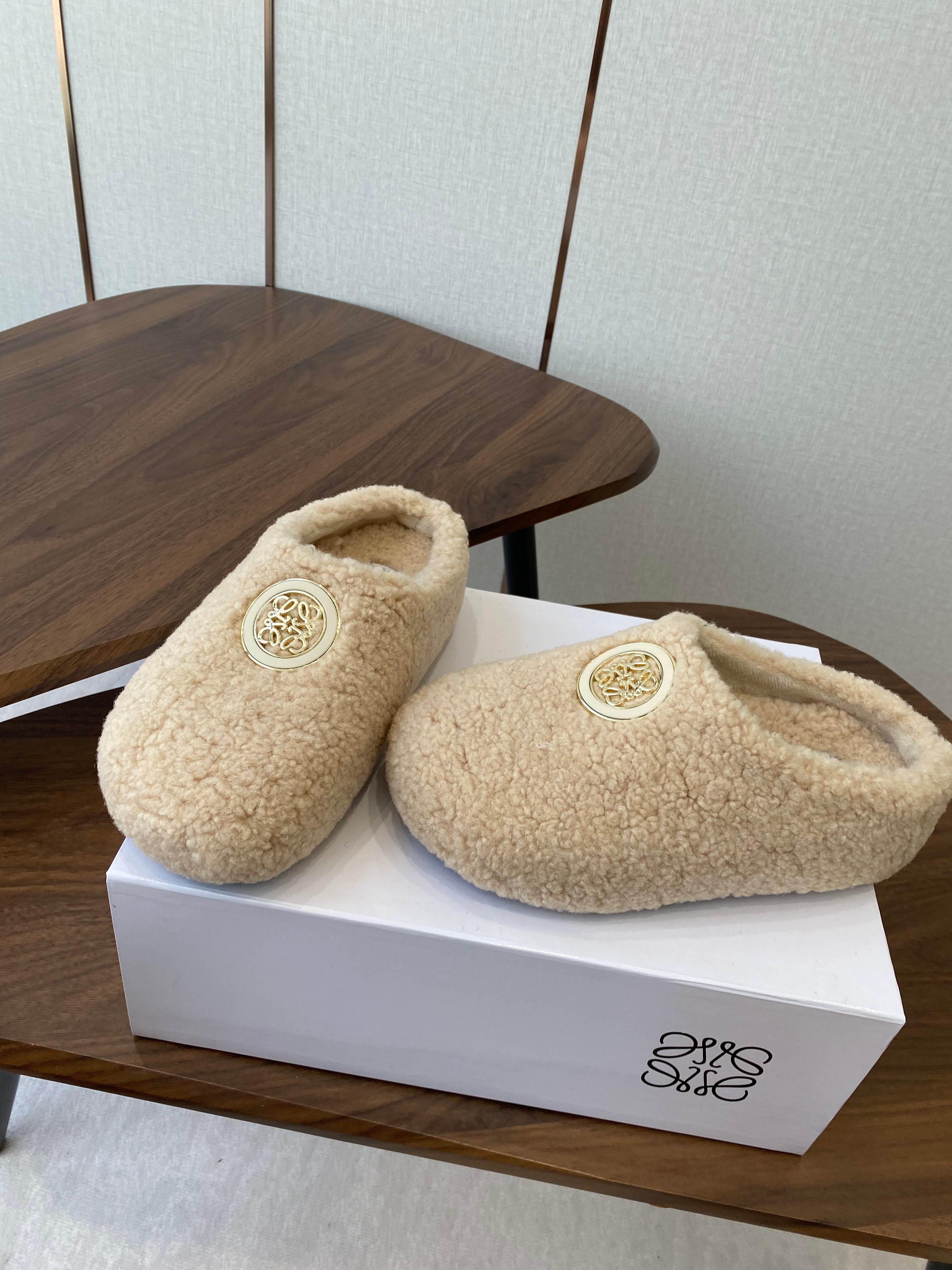 Loewe Birkenstock slippers beige wool 477791