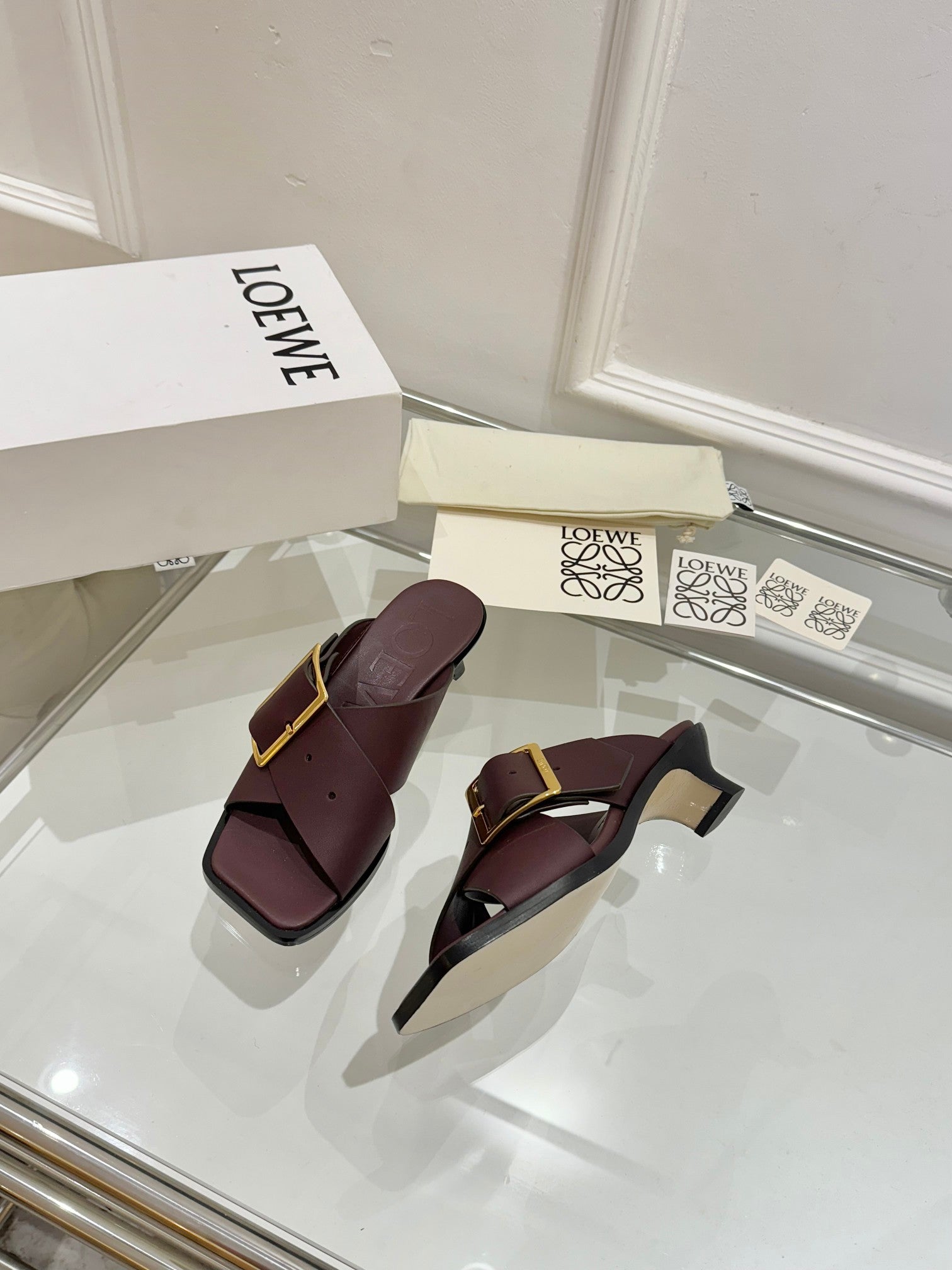 Loewe Petal Belt Mule Mahogany Red Cowhide