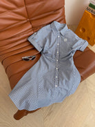 Loewe 25 Pleated Striped Dress Blue White Cotton