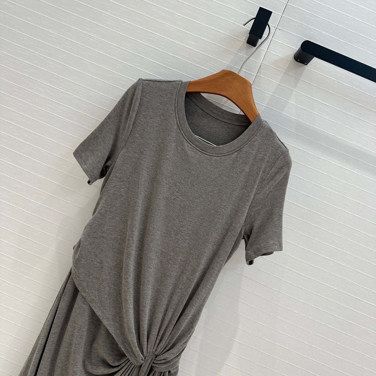 Loewe 25 Knotted Short-sleeved Dress Gray Viscose