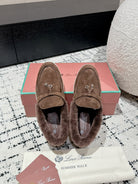 LP Summer Charms Walk Loafers In Earth Brown Suede With Rabbit Fur Lining 985644