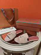Summer Charms Sandals in Taupe Suede Maroon Lambskin