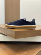 Loro Piana Tennis Walk Sneakers Suede Calf Split Navy Blue