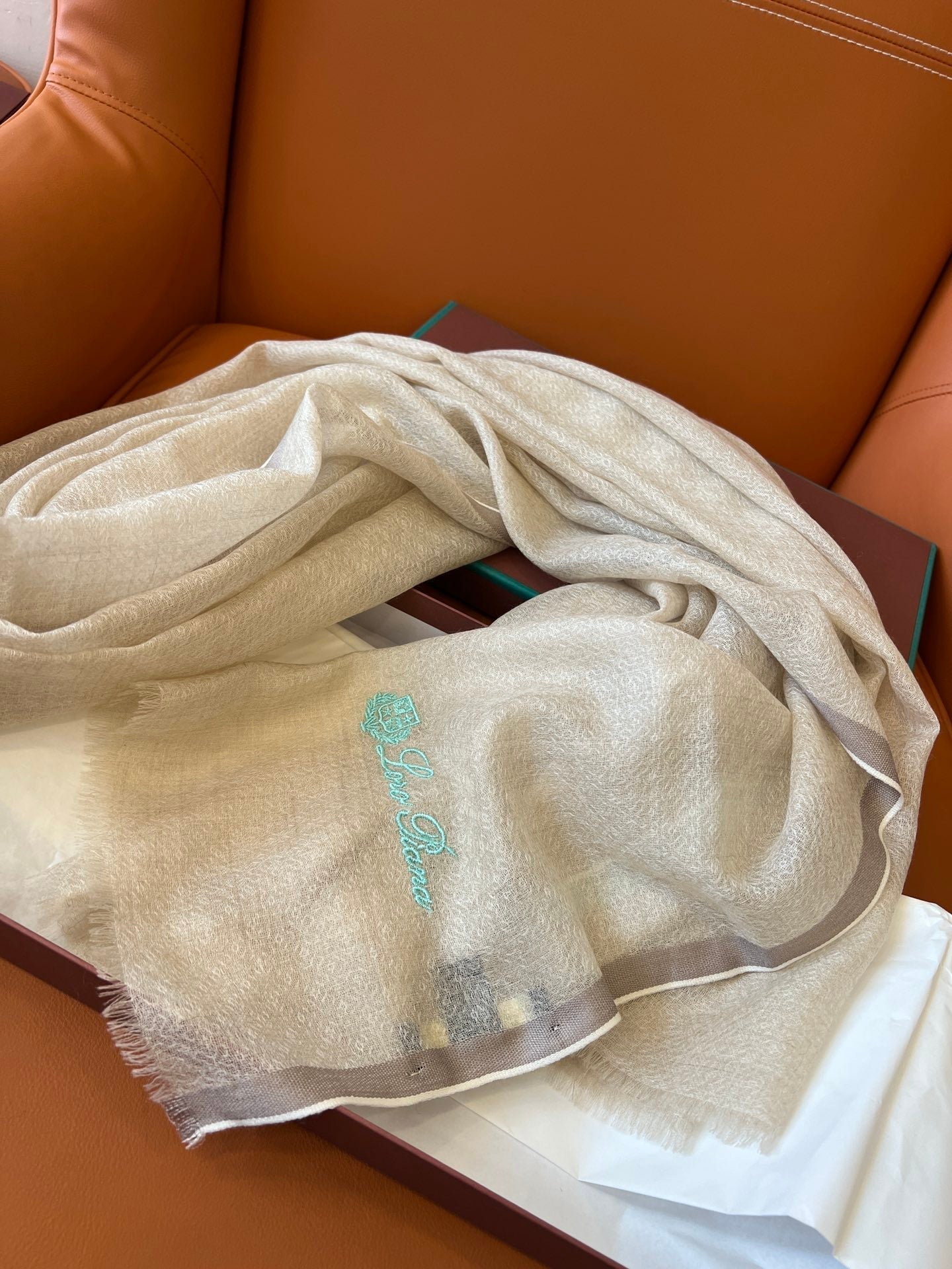 LP Quadrata Rainbow Scarf 210 CM In Beige Thin Silk Woven With Wool 428592
