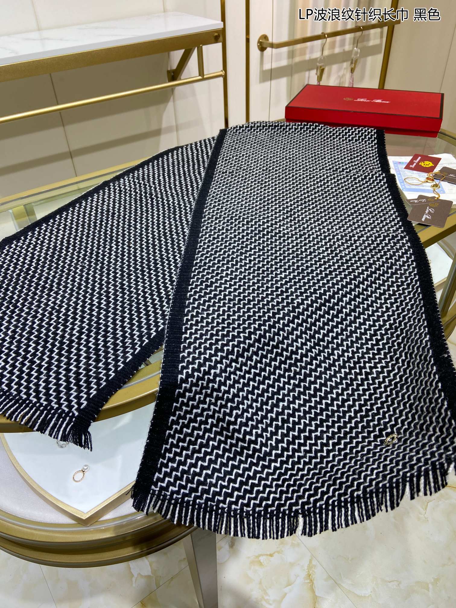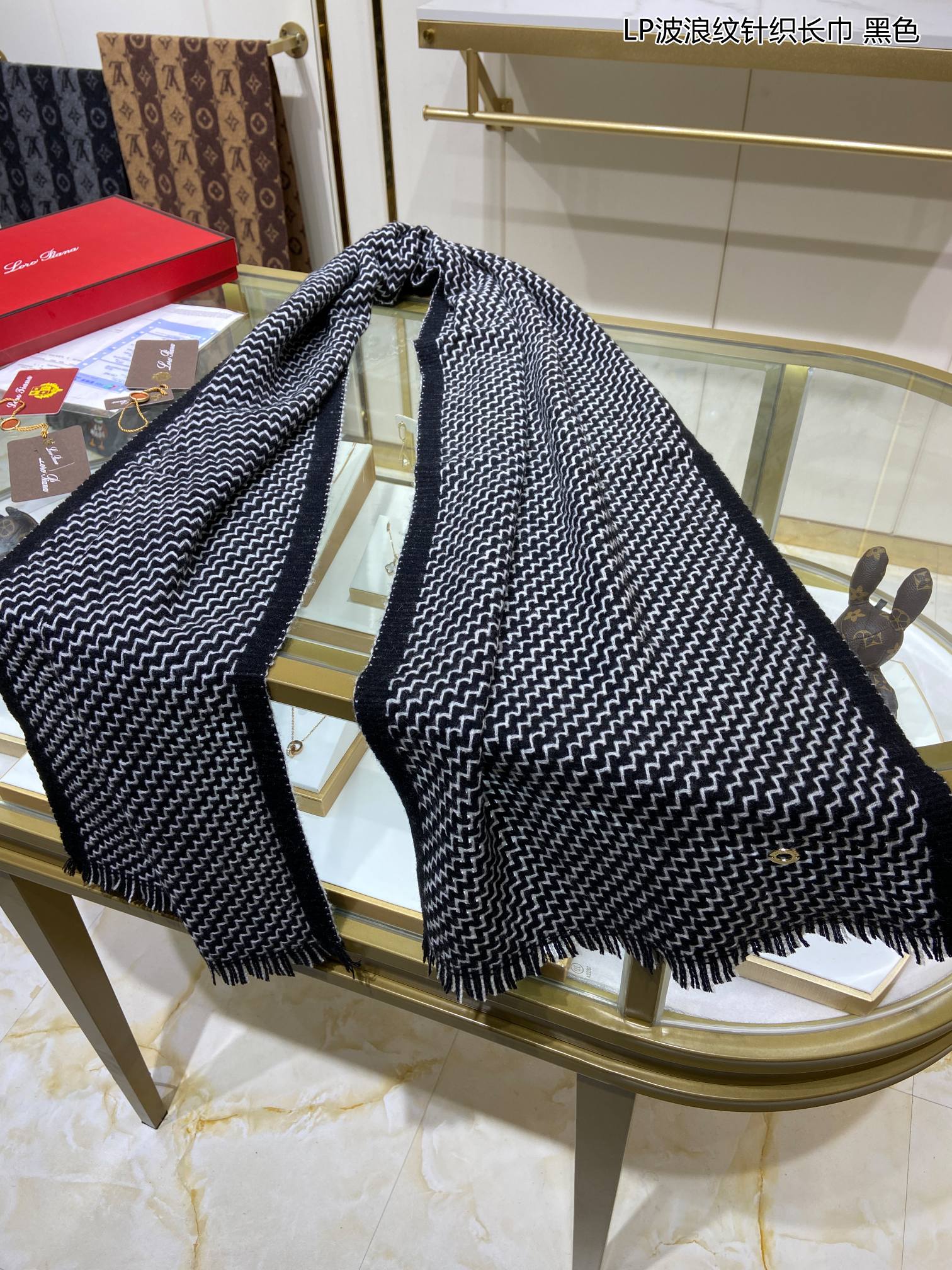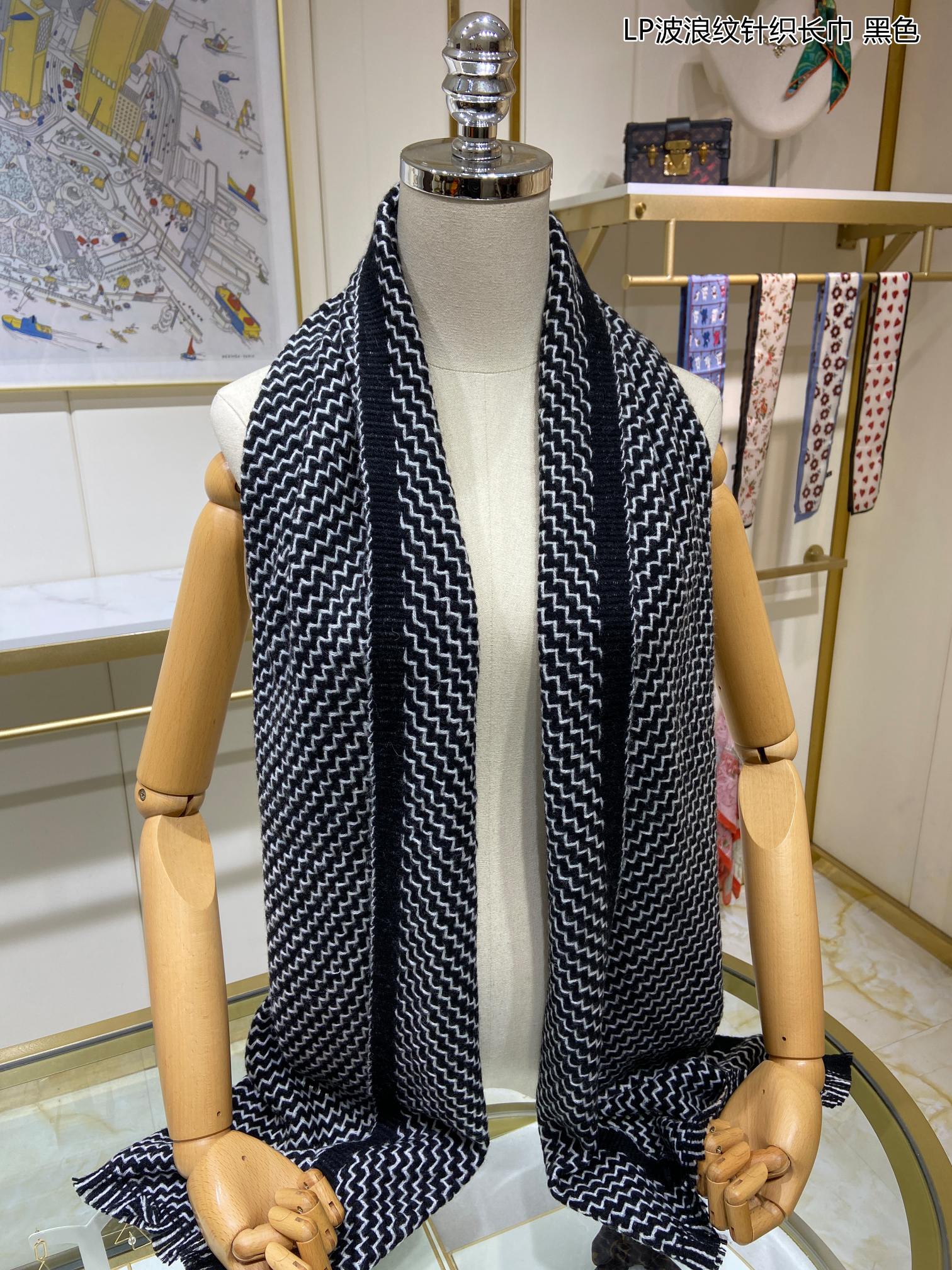 LP Scarf 190 CM In Black White Cashmere 645515