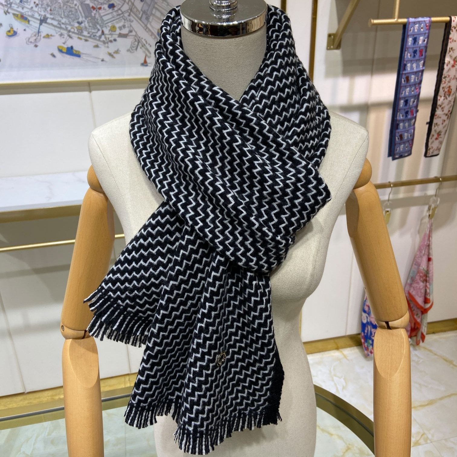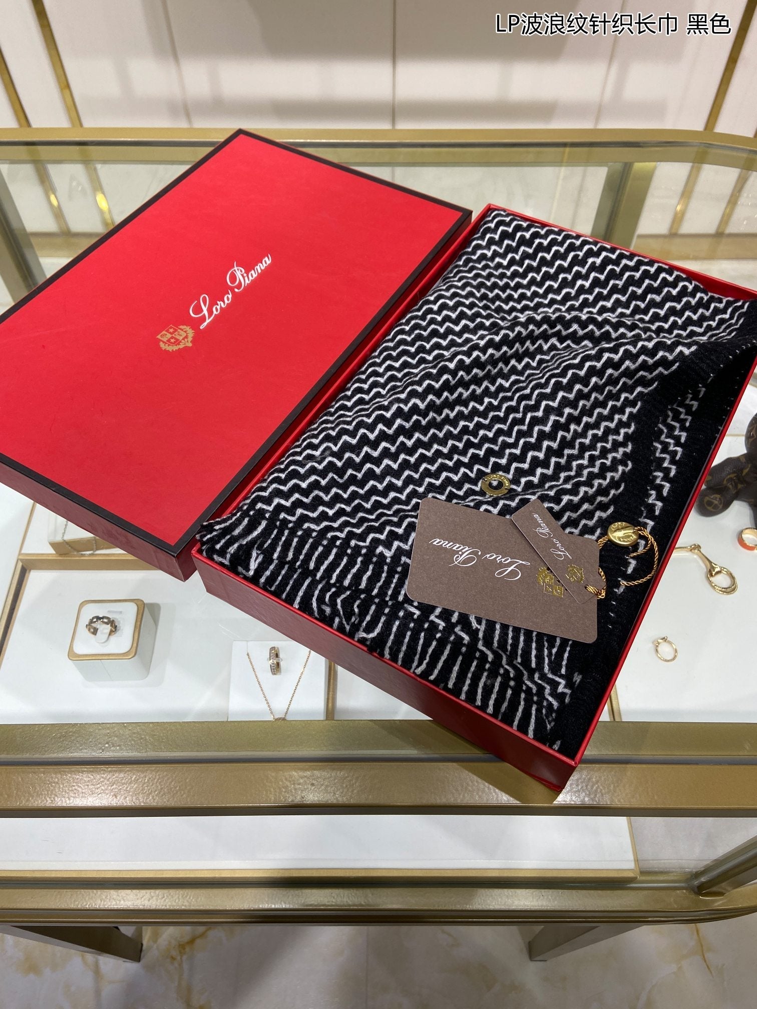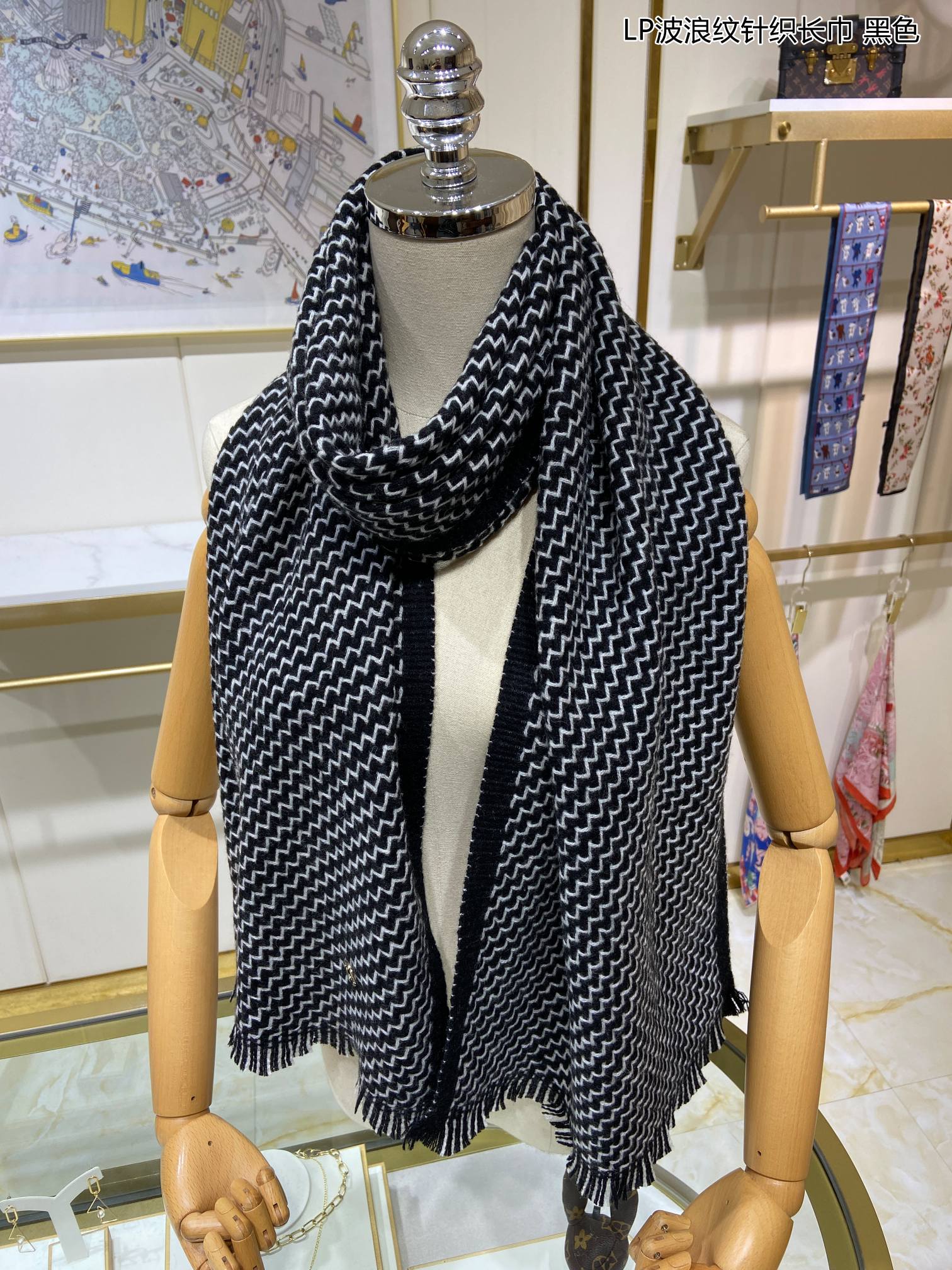 LP Scarf 190 CM In Black White Cashmere 645515