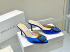 Manolo Buckle Mules 7cm Navy Blue Silk 208020