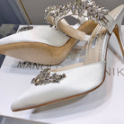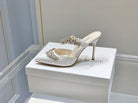 Manolo Mules Crystal White Silk Satin 219381