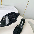 Manolo Mules Latest Checkerboard Black Fabric Leather 528010