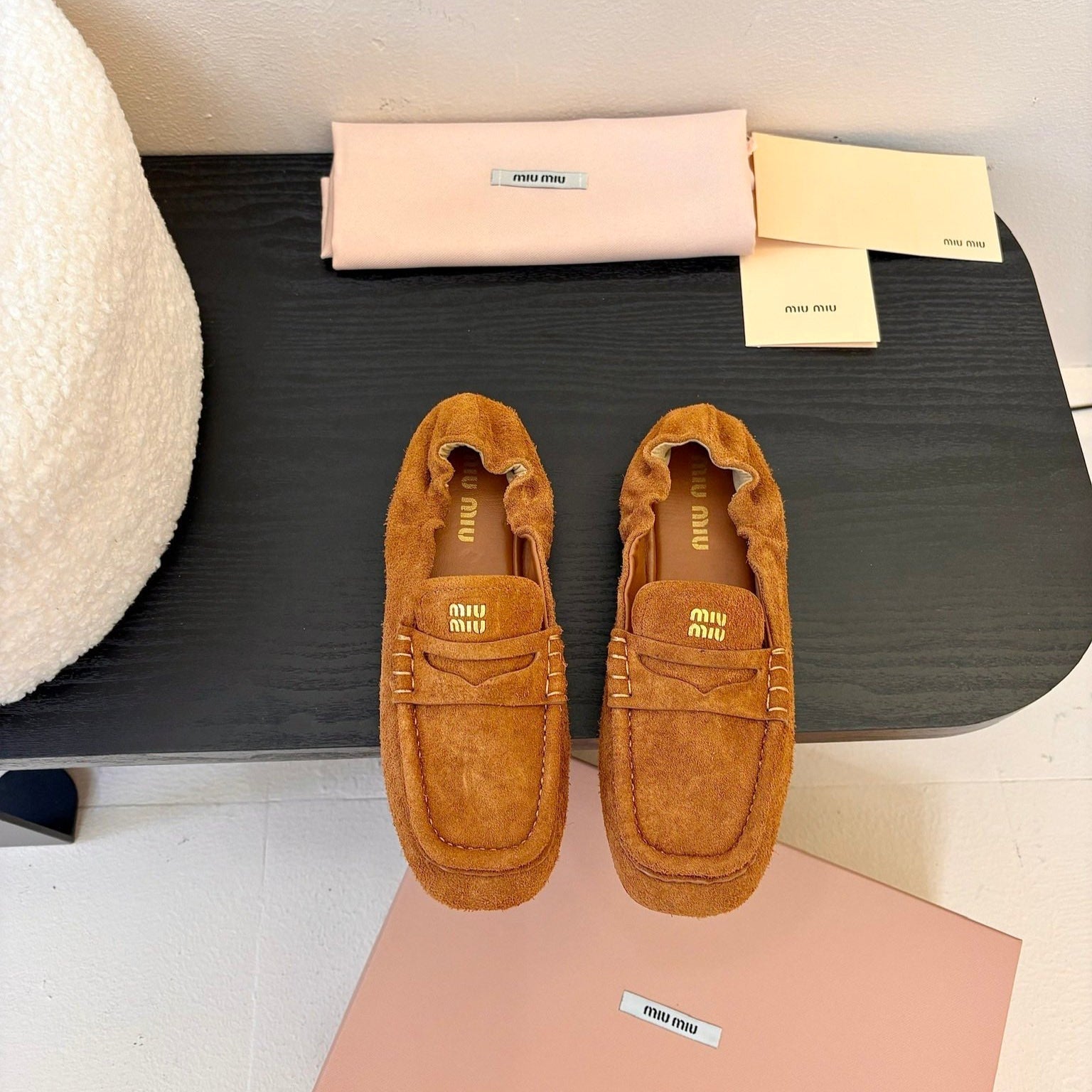 Miu 25C Ruches nappa Loafers Brown Suede 235808