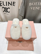Miu Slippers White Soft Imported Wool And Fur