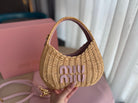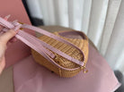 WANDER WICKER HOBO BAG 20 IN BROWN HANDWOVEN WITH PINK CALFSKIN LOGO