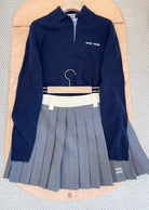 Miu Miu 25 Striped Polo Sweatshirt Dark Blue Cashmere