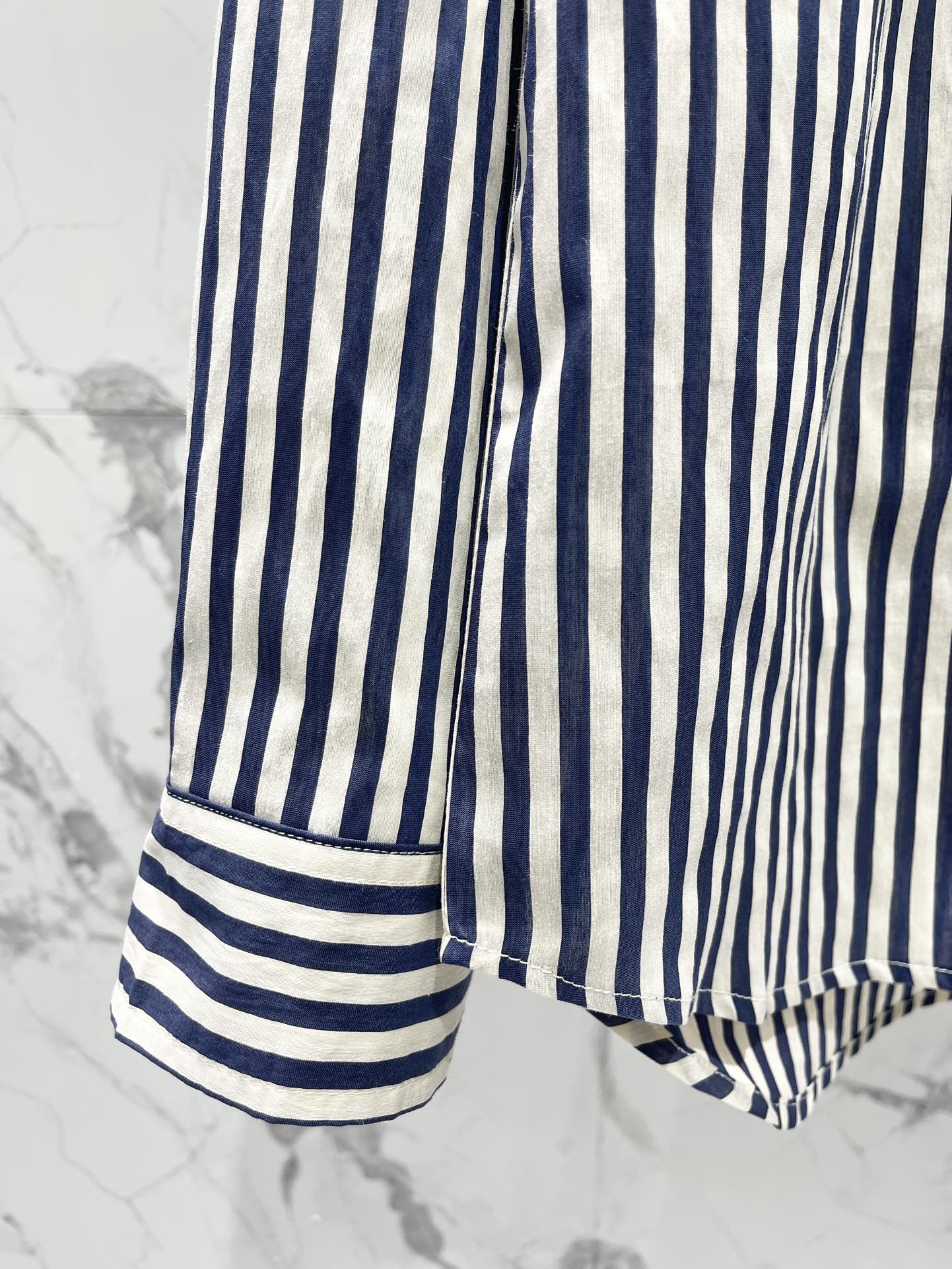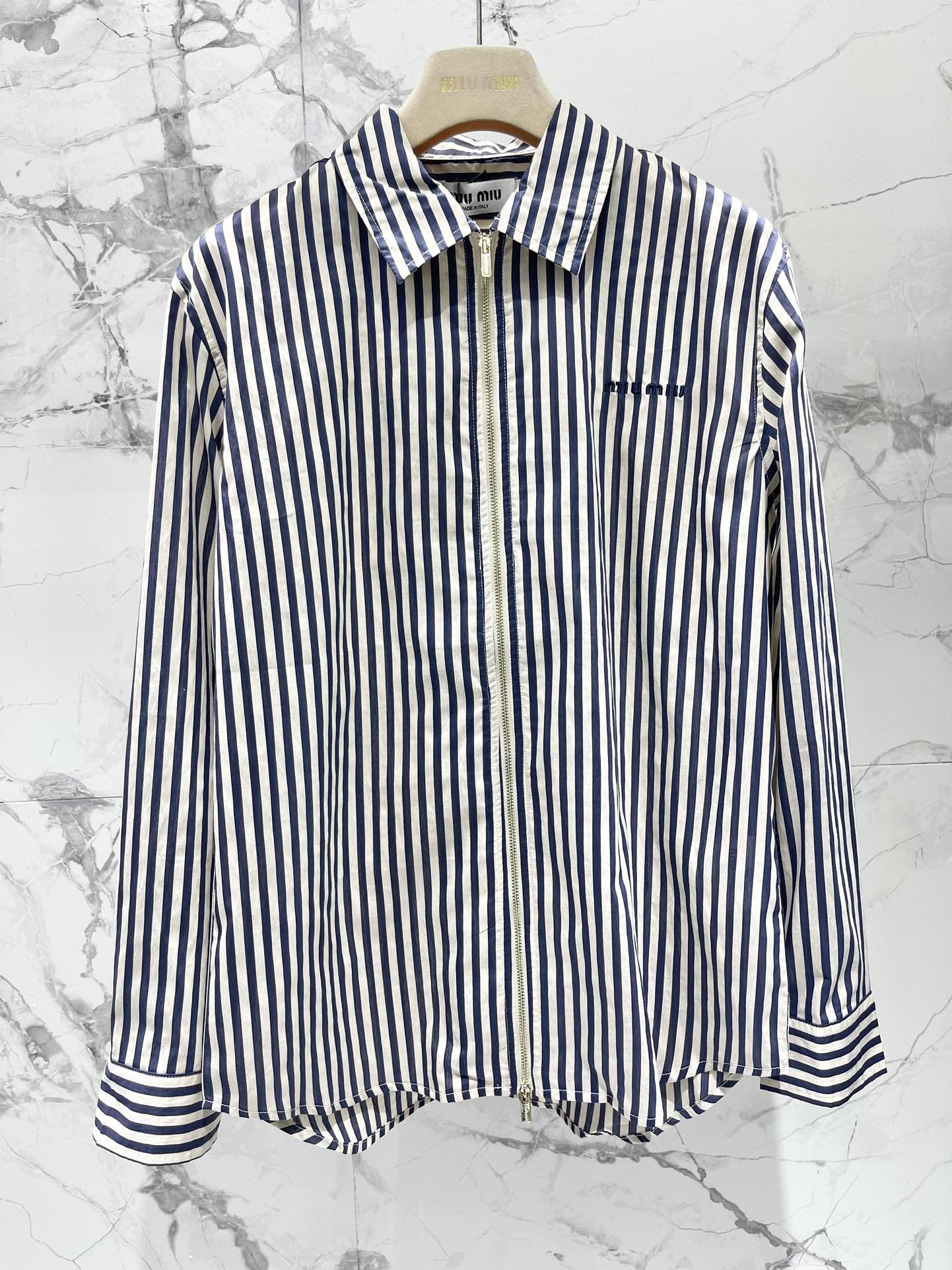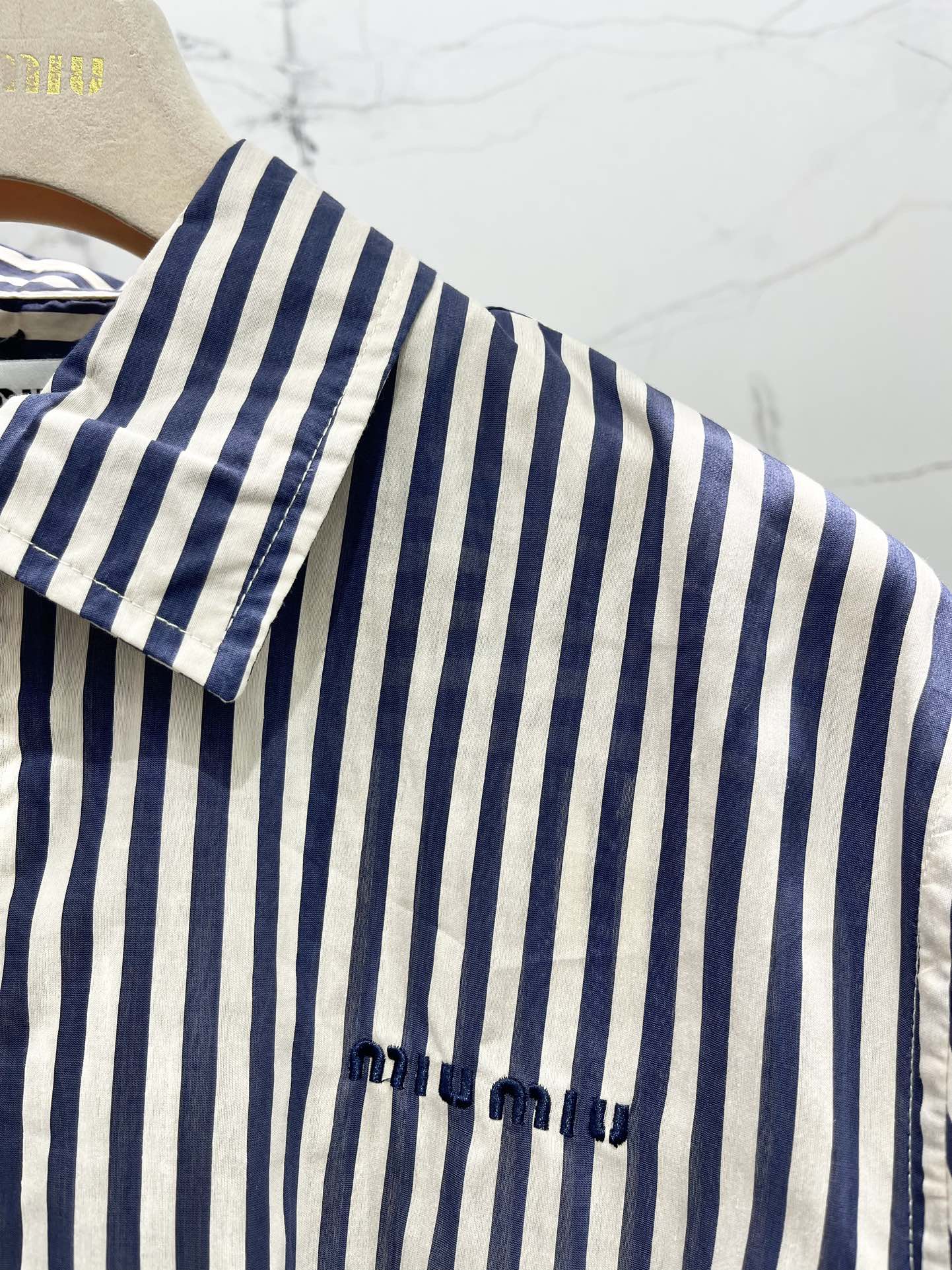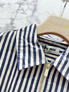 Miu Miu Striped Letter Embroidered Shirt Blue White Cotton