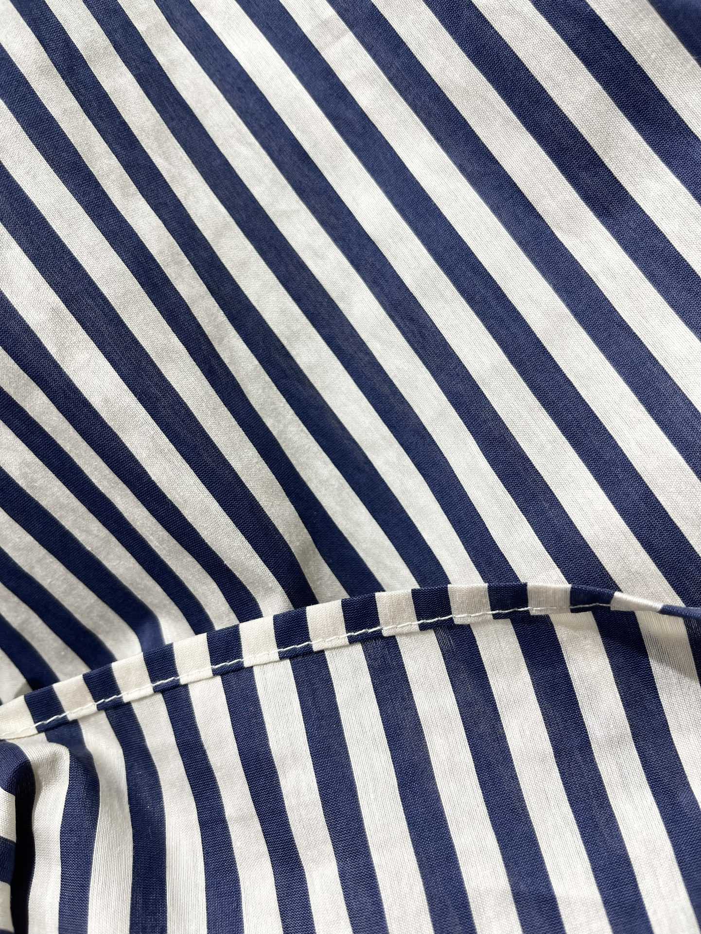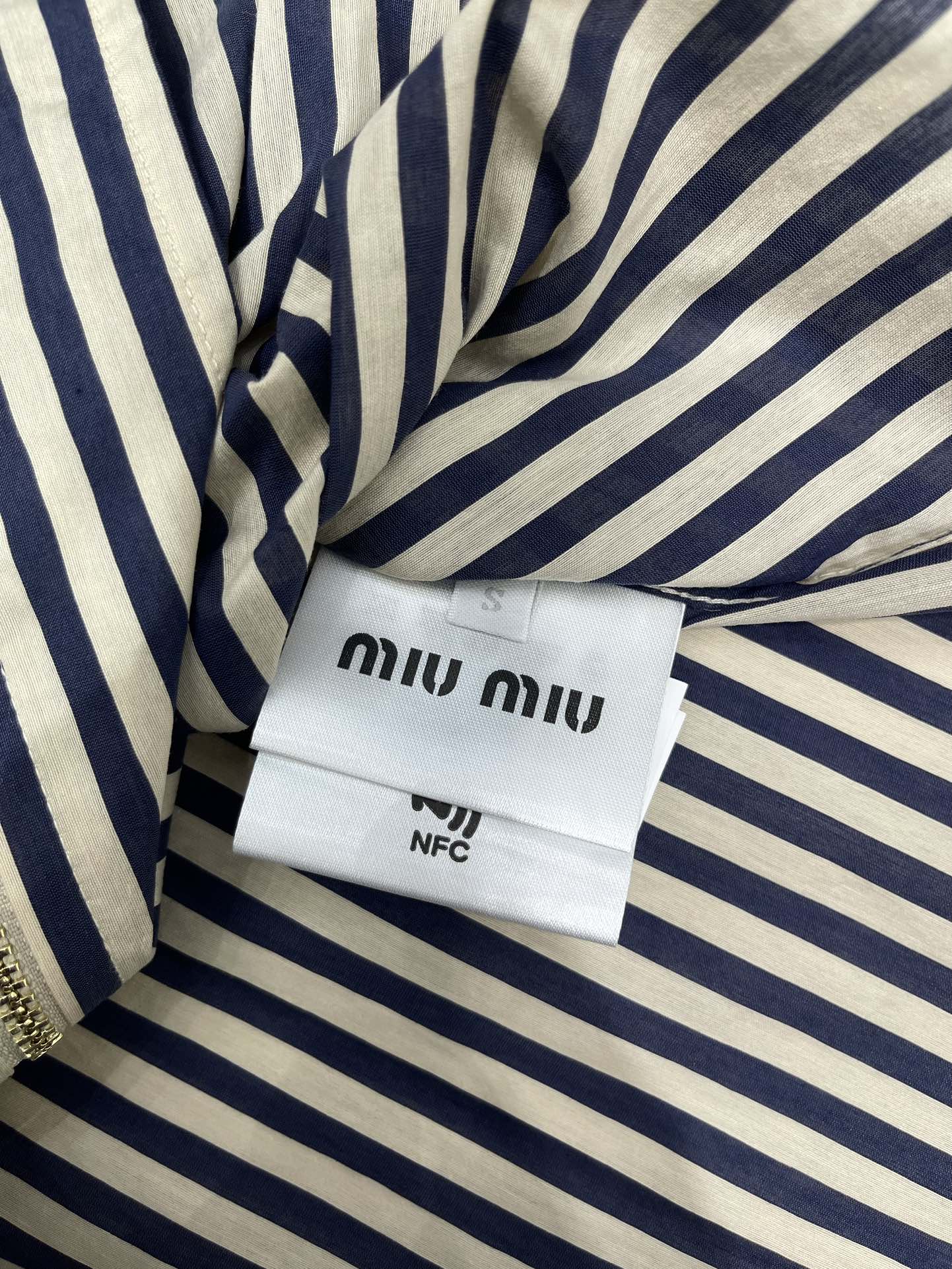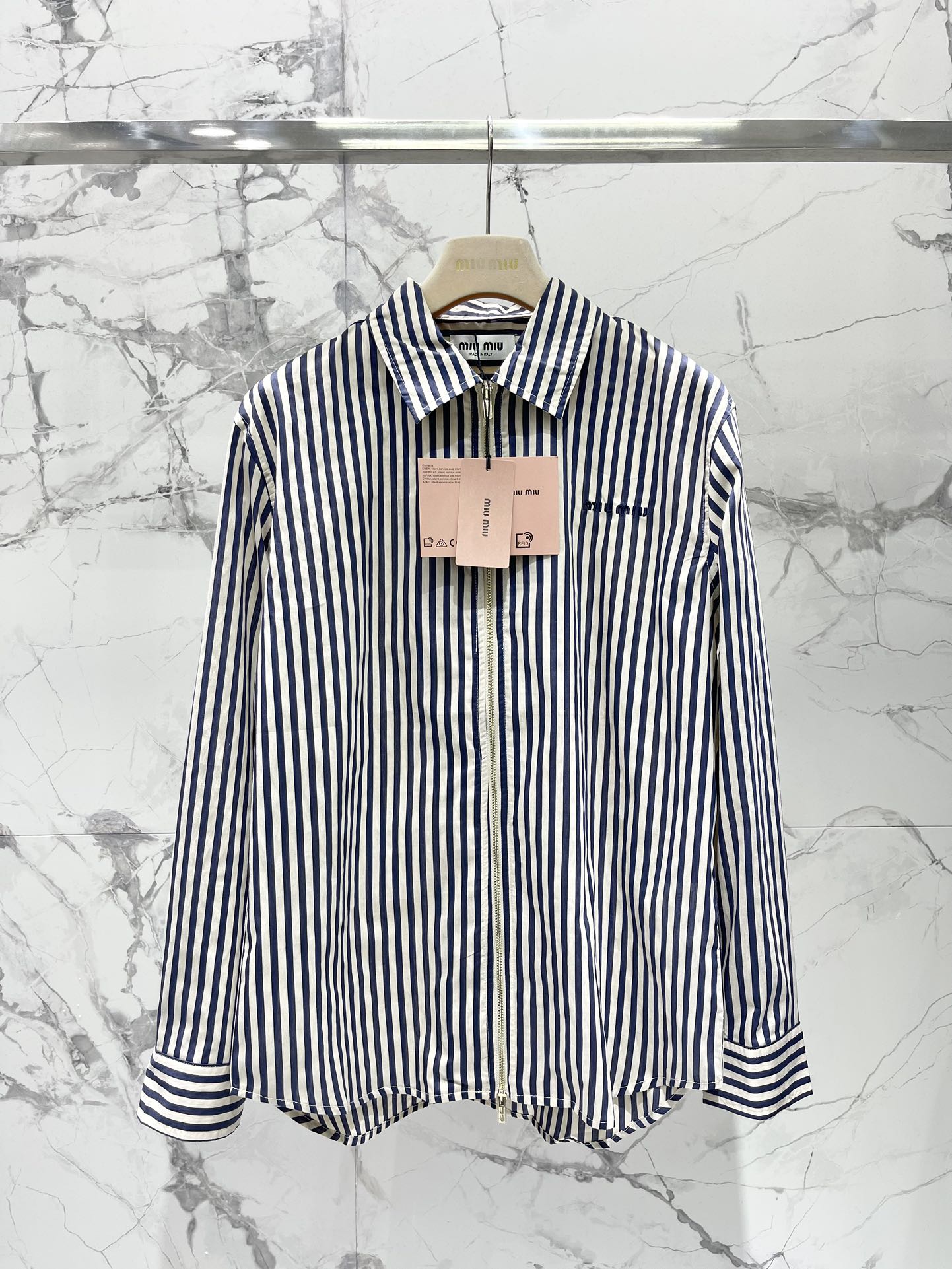 Miu Miu Striped Letter Embroidered Shirt Blue White Cotton