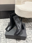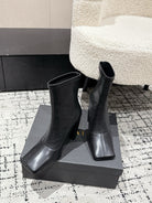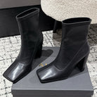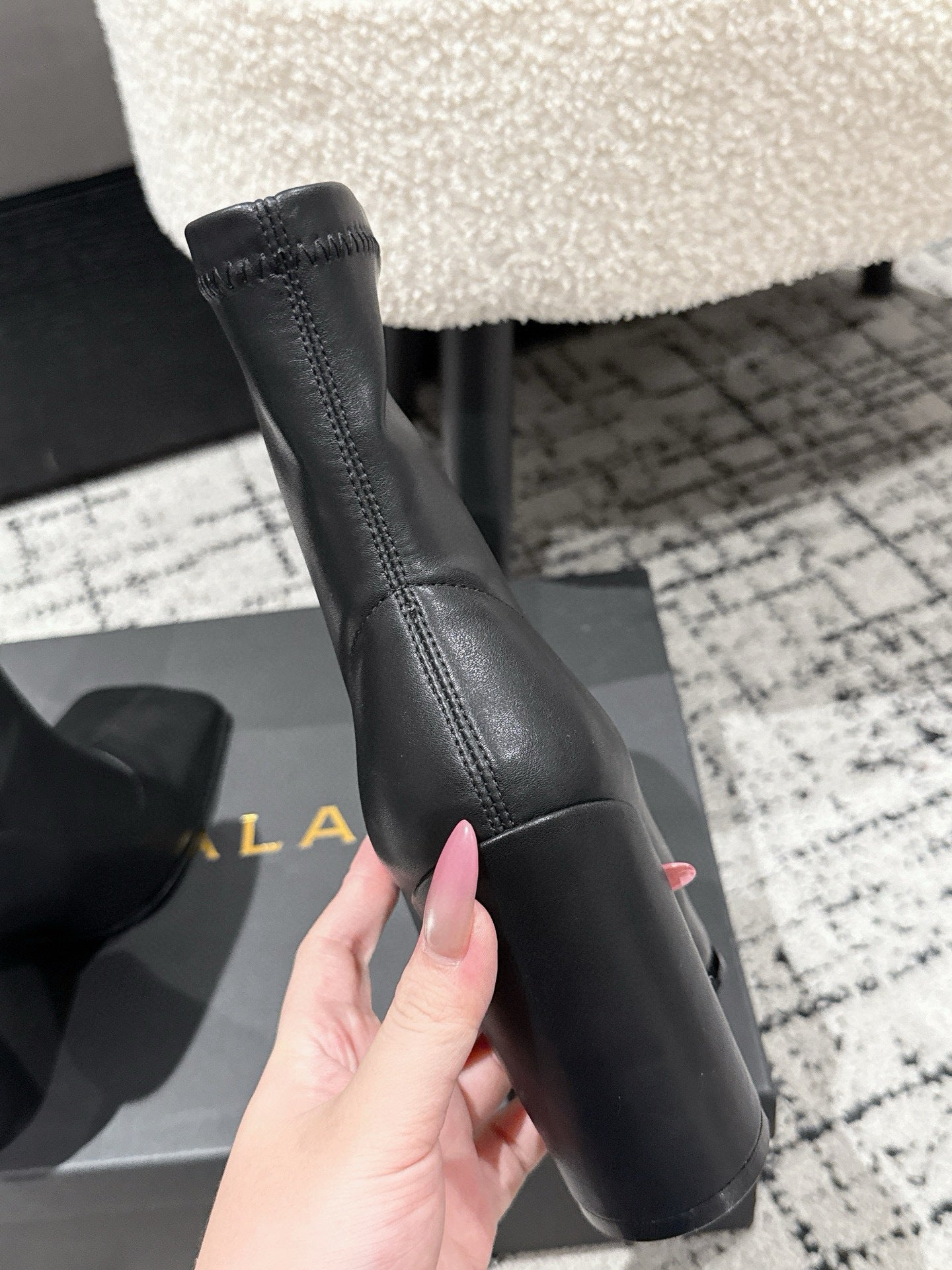 Alaia 2025 Square Toe High Heeled Ankle Boot Black Calfskin 558666
