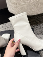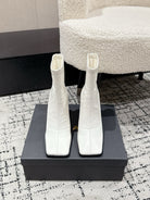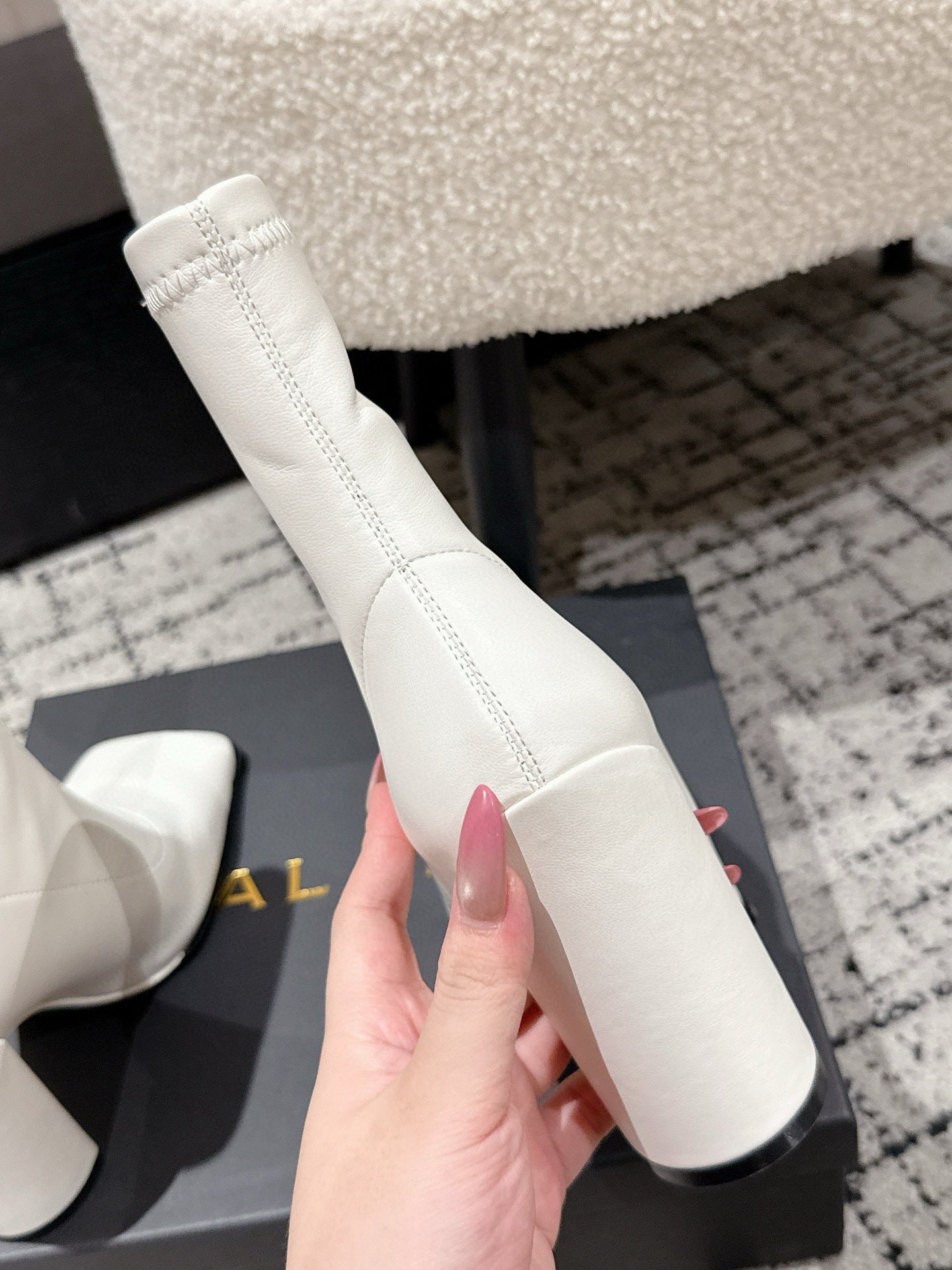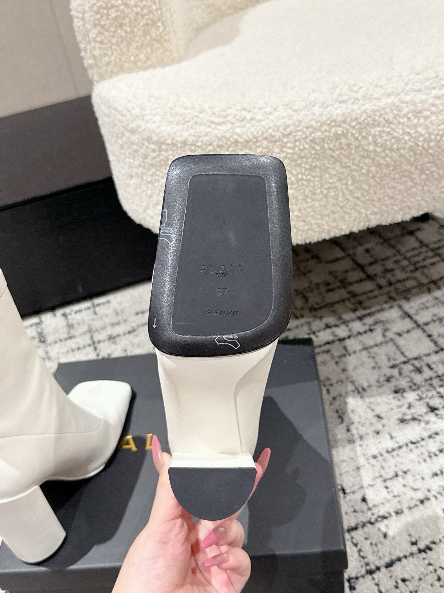 Alaia 2025 Square Toe High Heeled Ankle Boot White Calfskin 558667