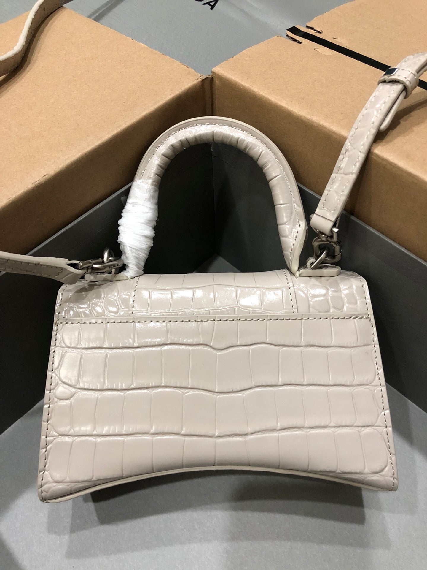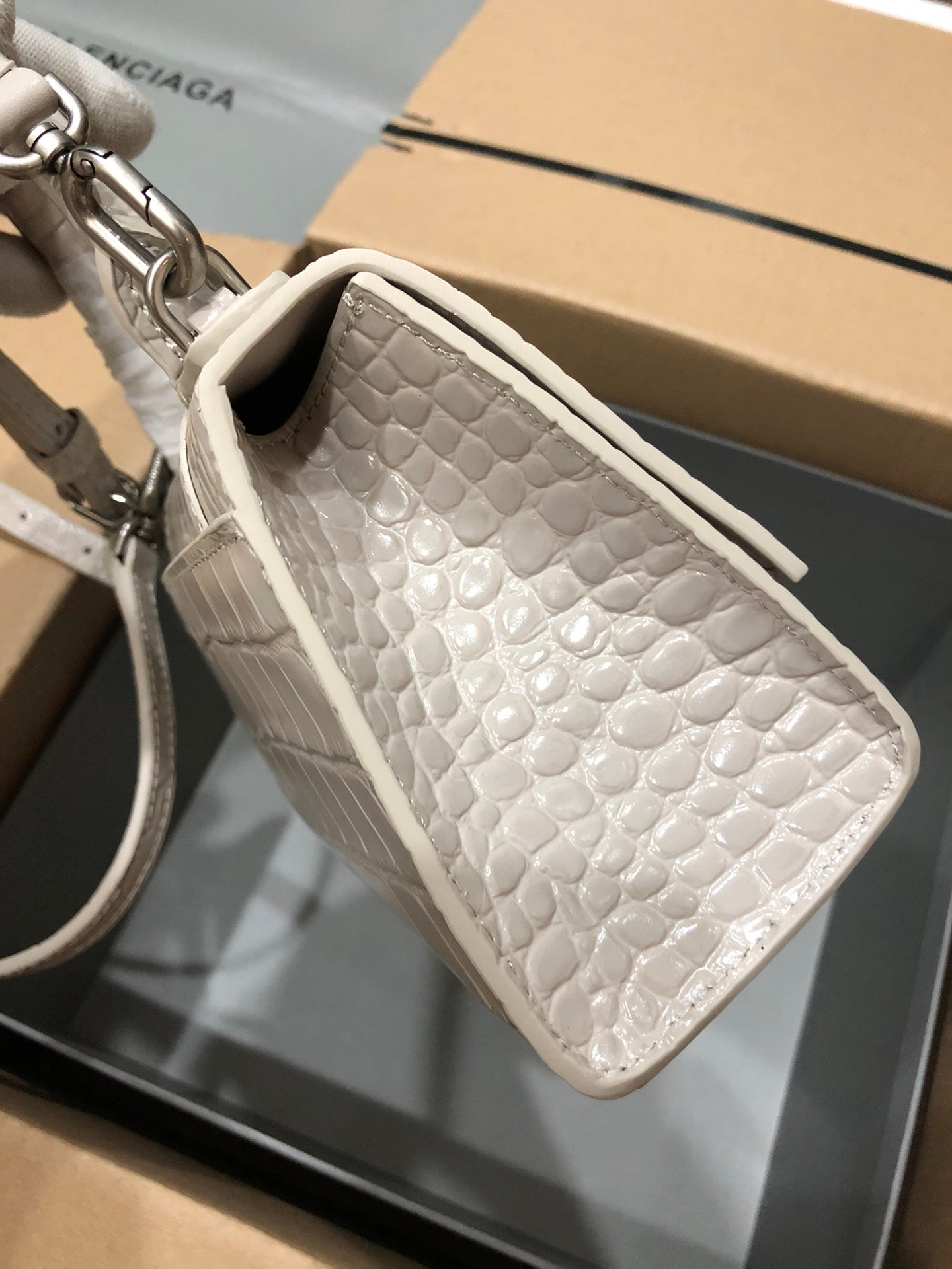 Balenciaga Hourglass bag beige crocodile skin