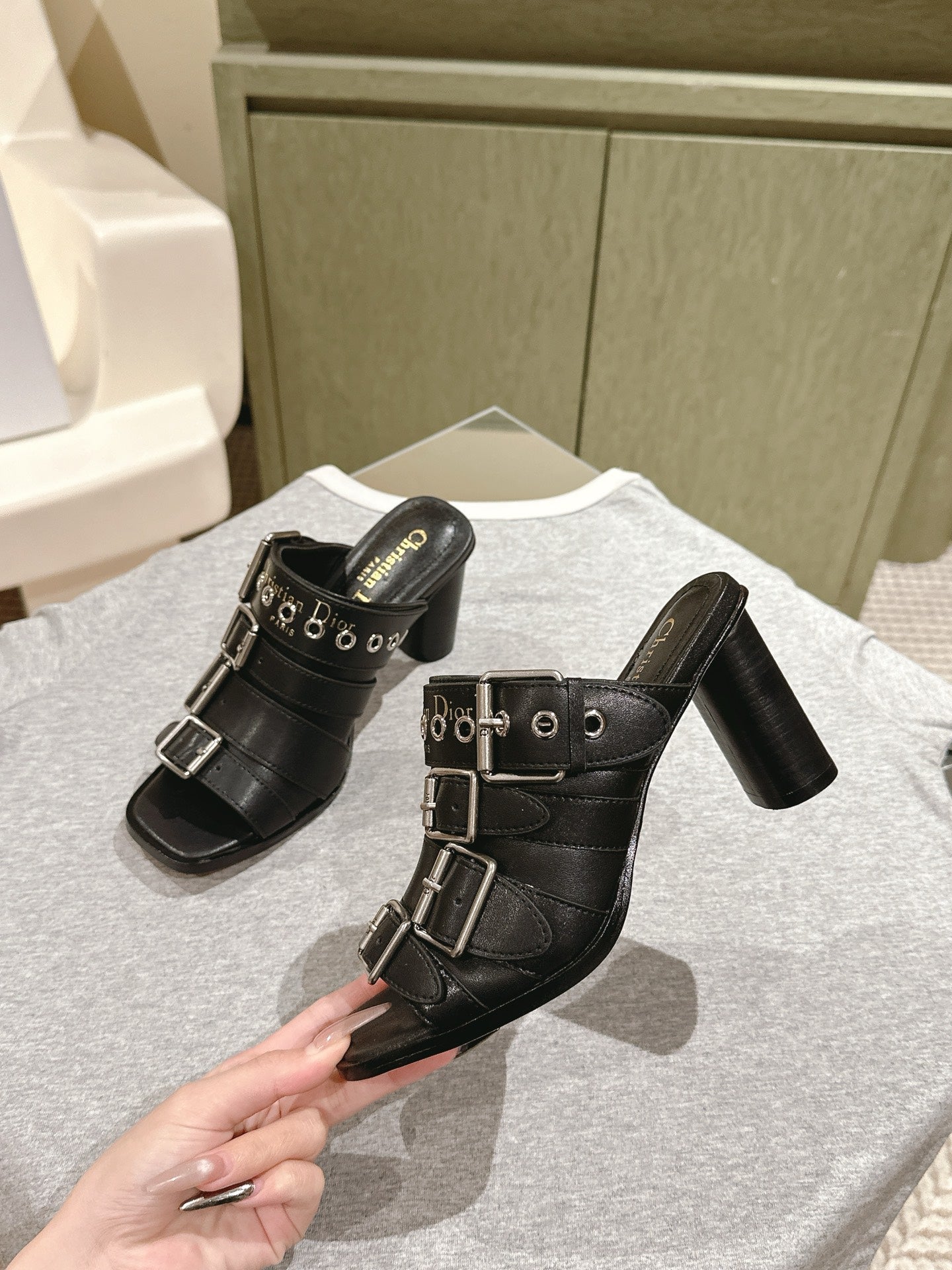 CD 25 Punk Heeled Slide Lambskin with Leather Buckle 241956
