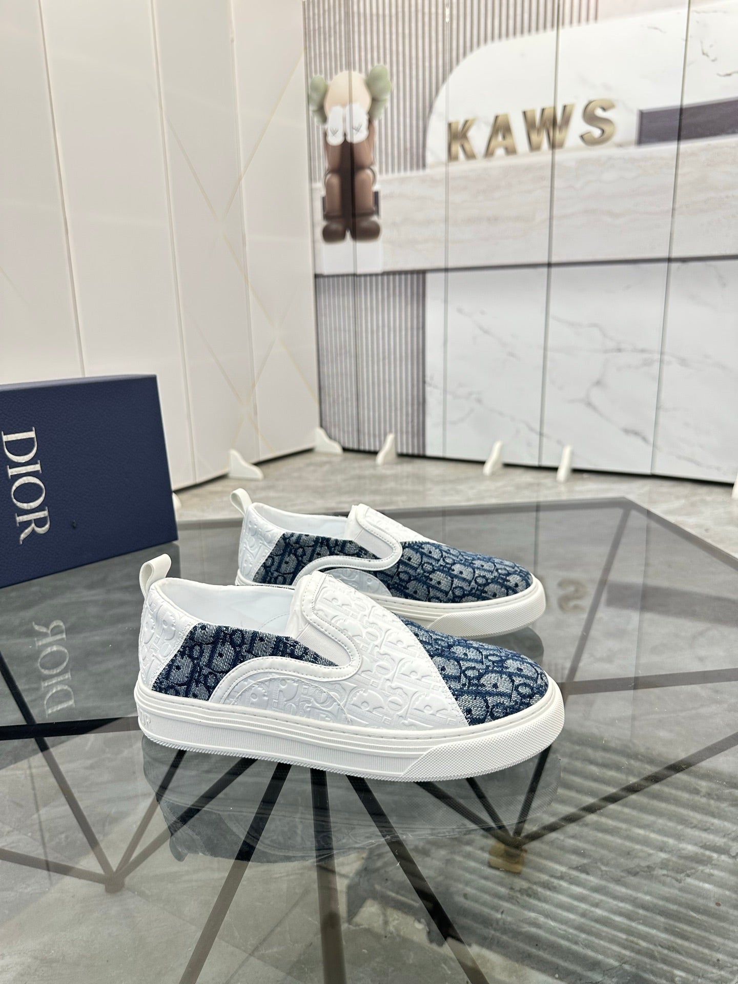 CD Slip on loafer White Blue Cowhide Fabric 647995