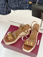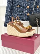 GC Floral Platform Wedge Sandal Brown Mix Beige lambskin