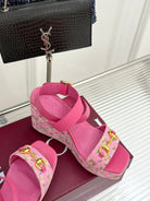 GC Floral Platform Wedge Sandal Pink Mix Flower lambskin