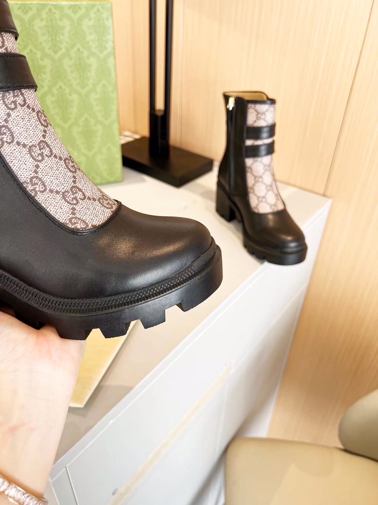 GG ankle boots black monogram canvas cowhide 397794