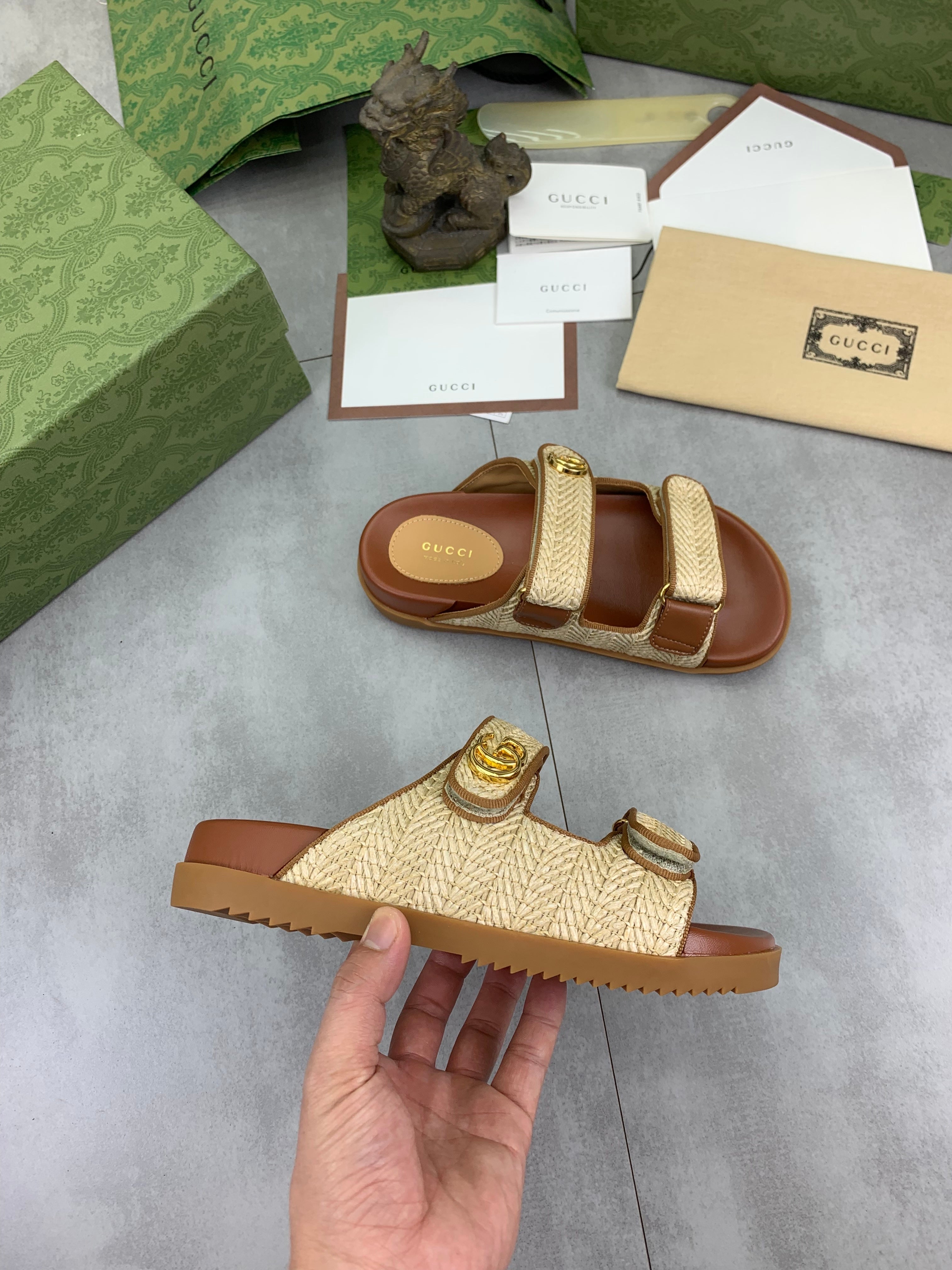 GG Men's 25 Slide Beige Brown Sedge Cowhide 734883