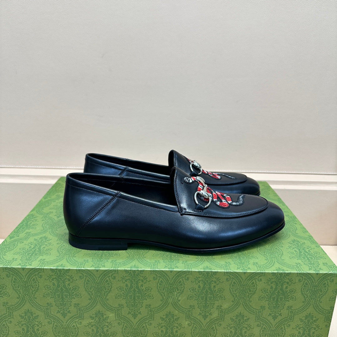 GG Men's 25 Snake Loafer Black Calfskin 575850