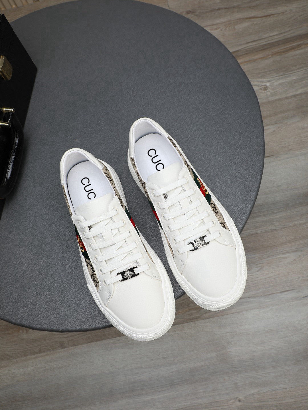GG Men's Ace Sneaker Brown White Print Fabric 522633