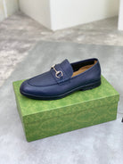 GG Men's Horsebit Loafer Navy Blue Silver Cowhide 524771