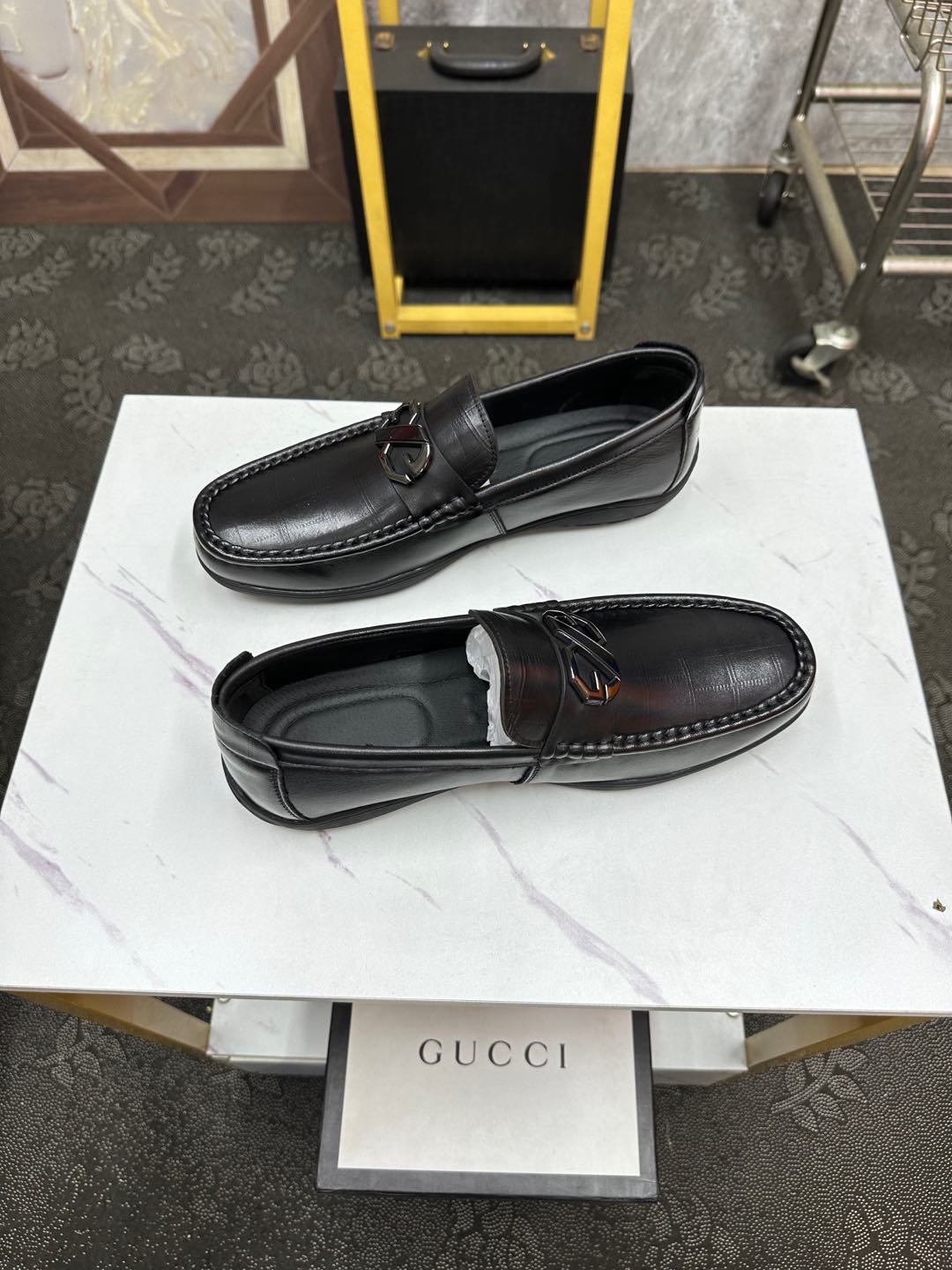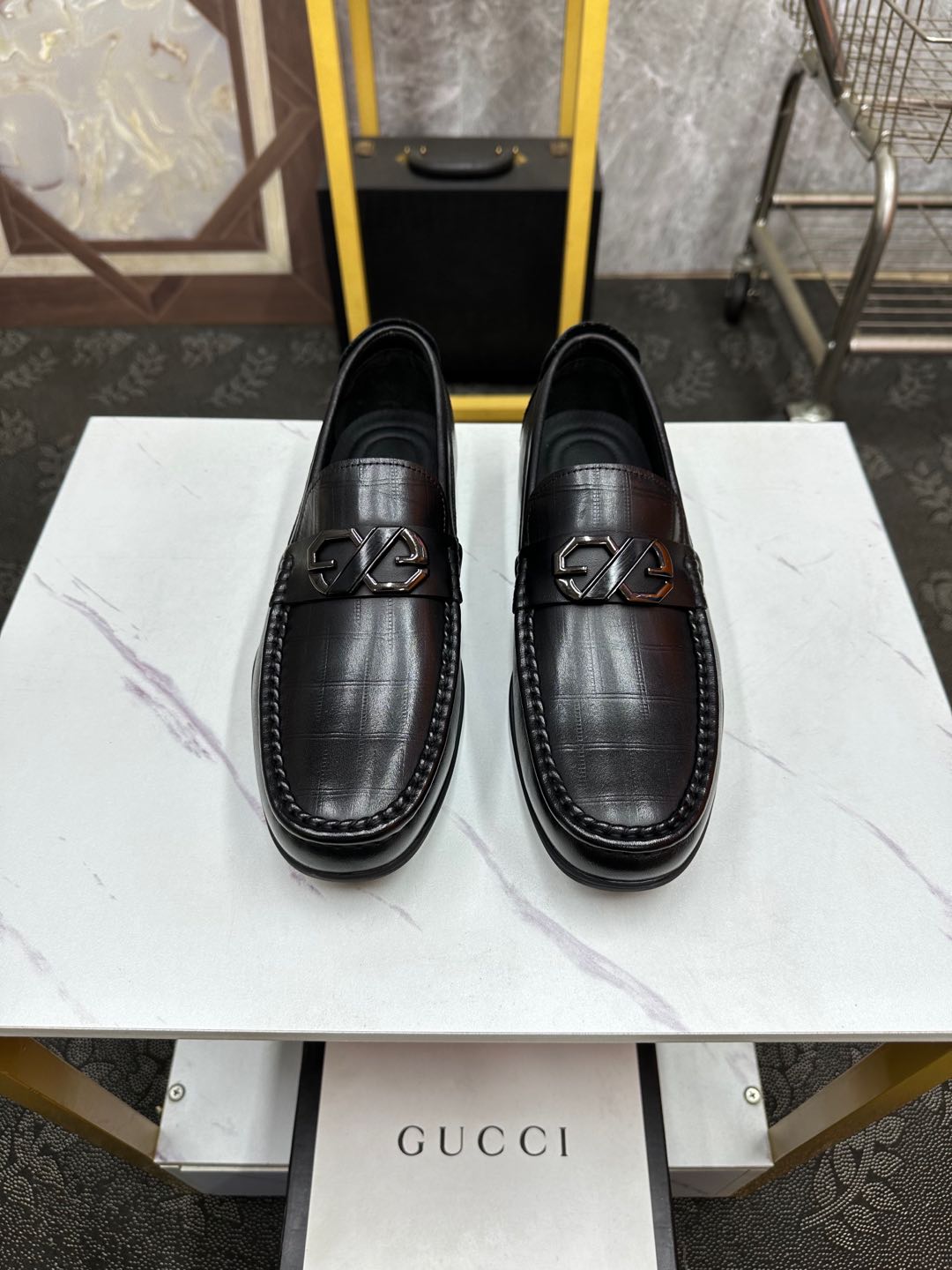 GG Men's Loafer Black Embossed Cowhide 532512