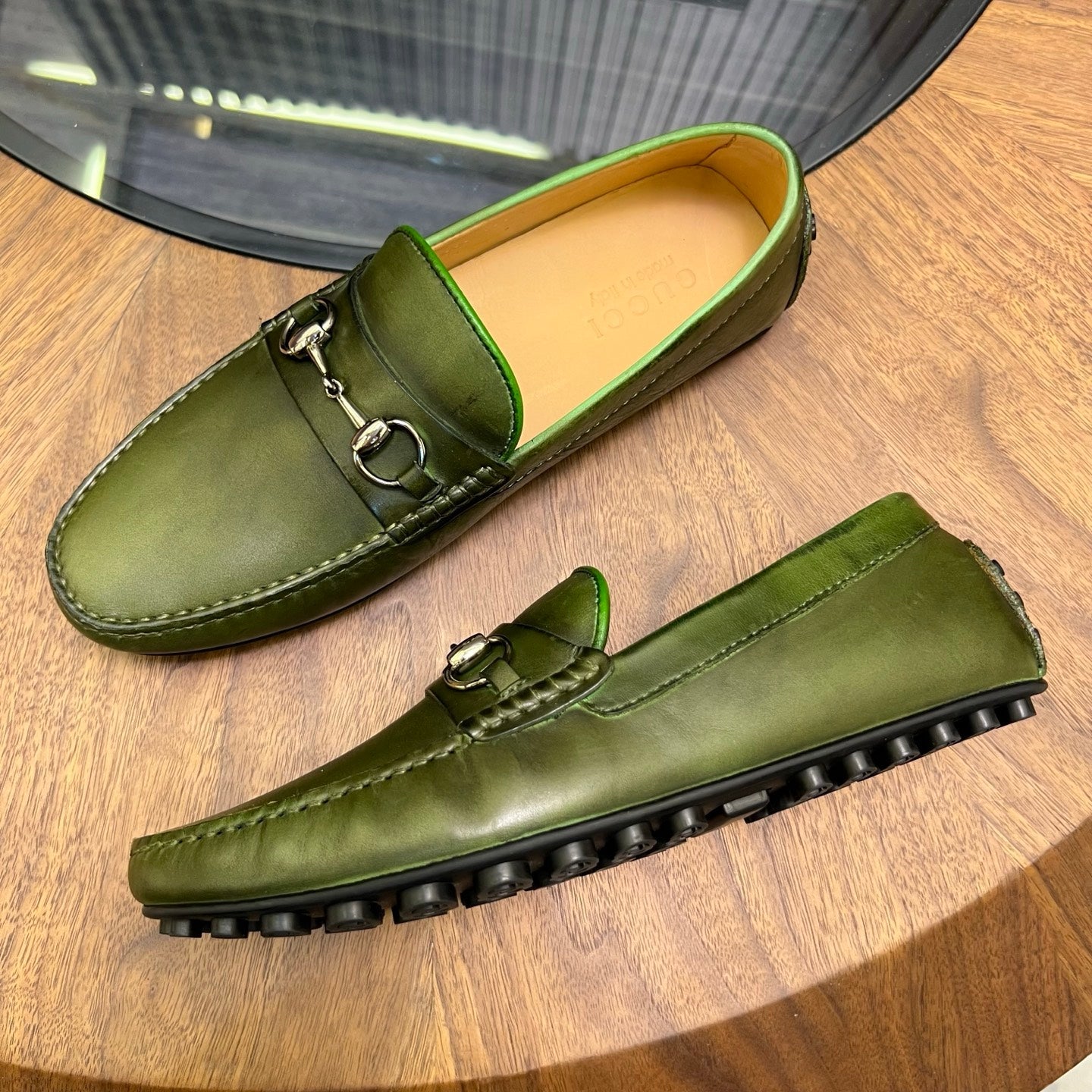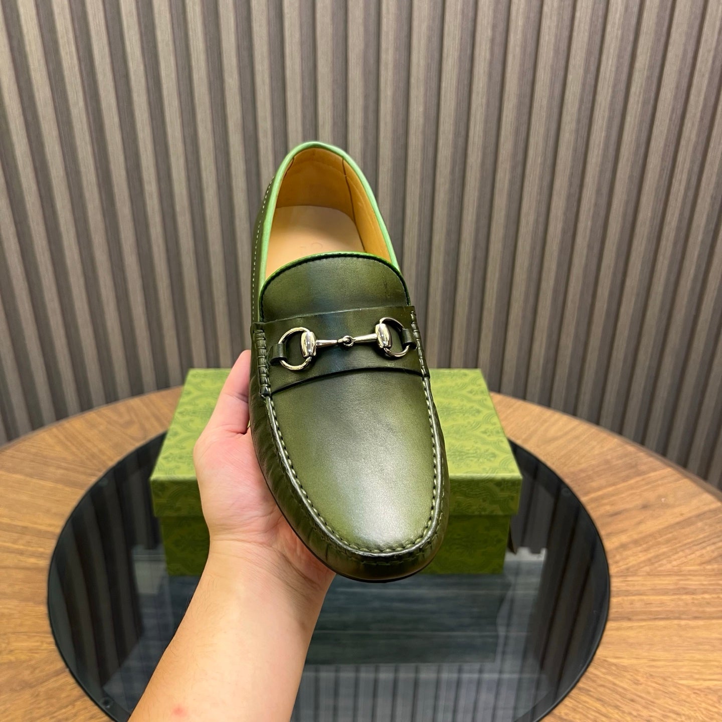 GG Men's Loafer Green Cowhide 731293