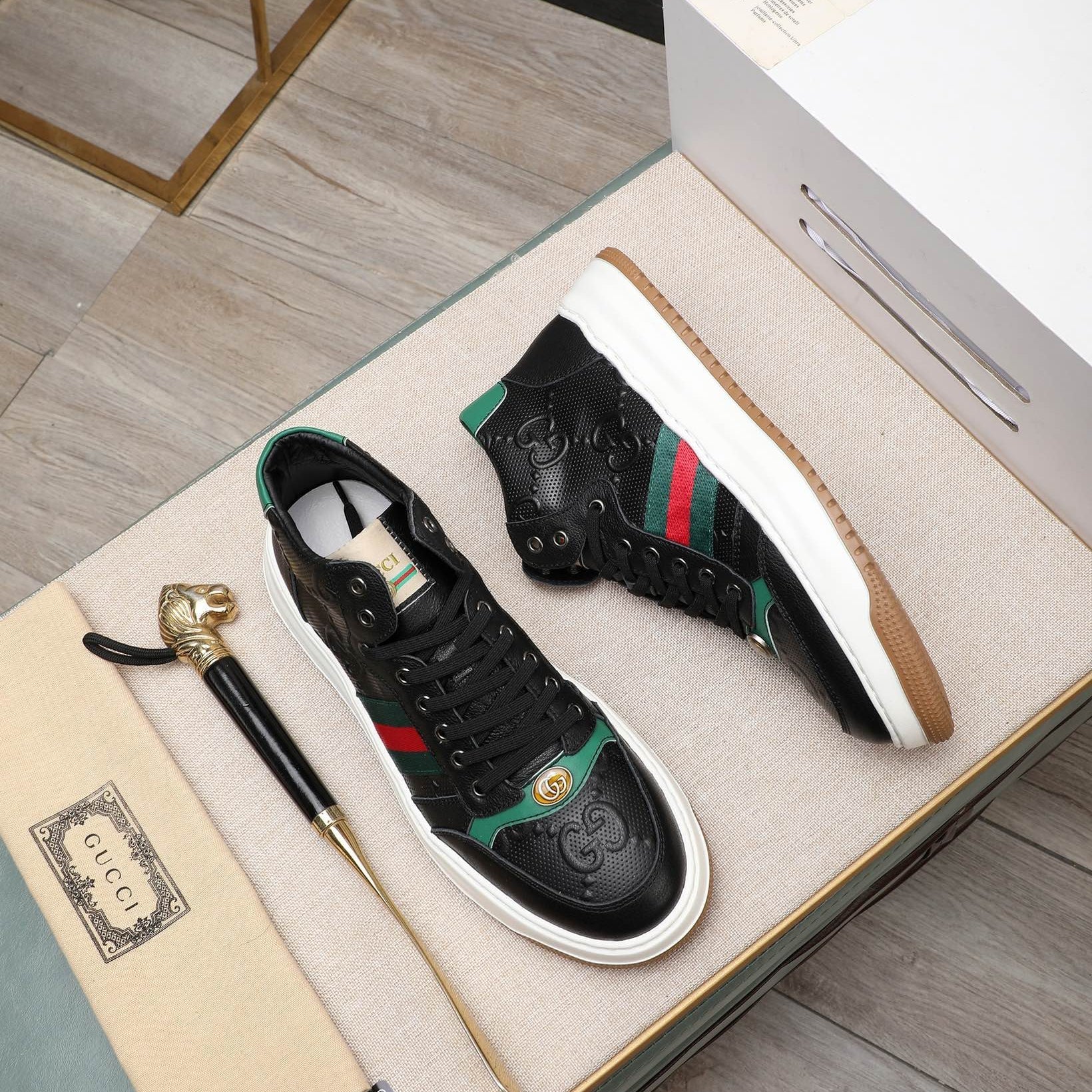 GG Men's Screener Sneaker Black Cowhide 440160